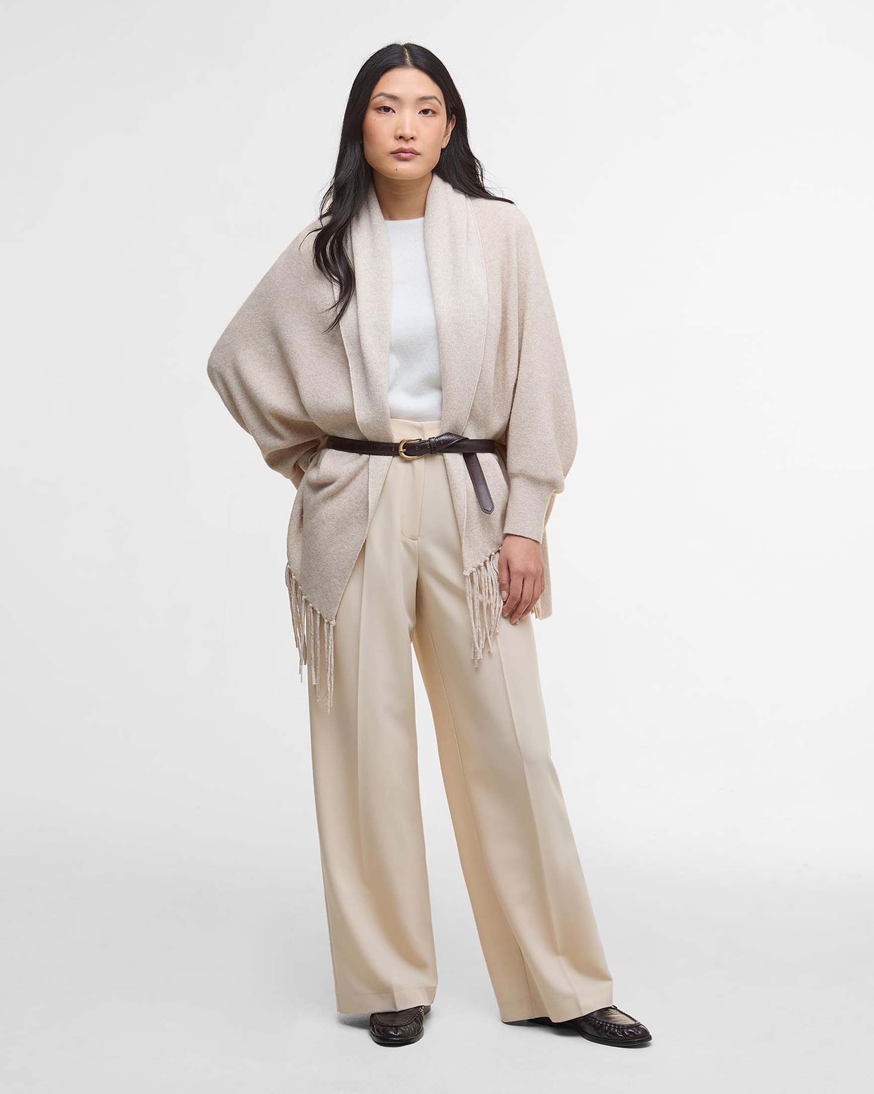 Mantella Barbour Tabitha beige in lana e viscoa con frange al fondo