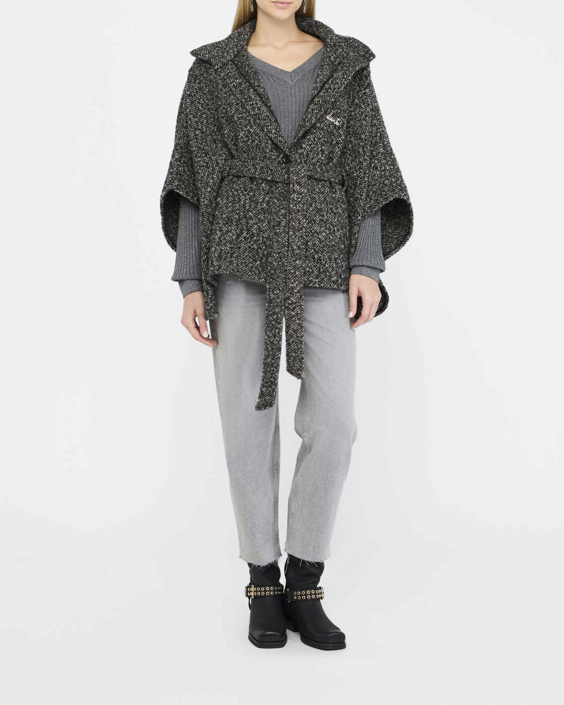 Mantella grigia Pinko in misto lana con motivo logo jacquard all over