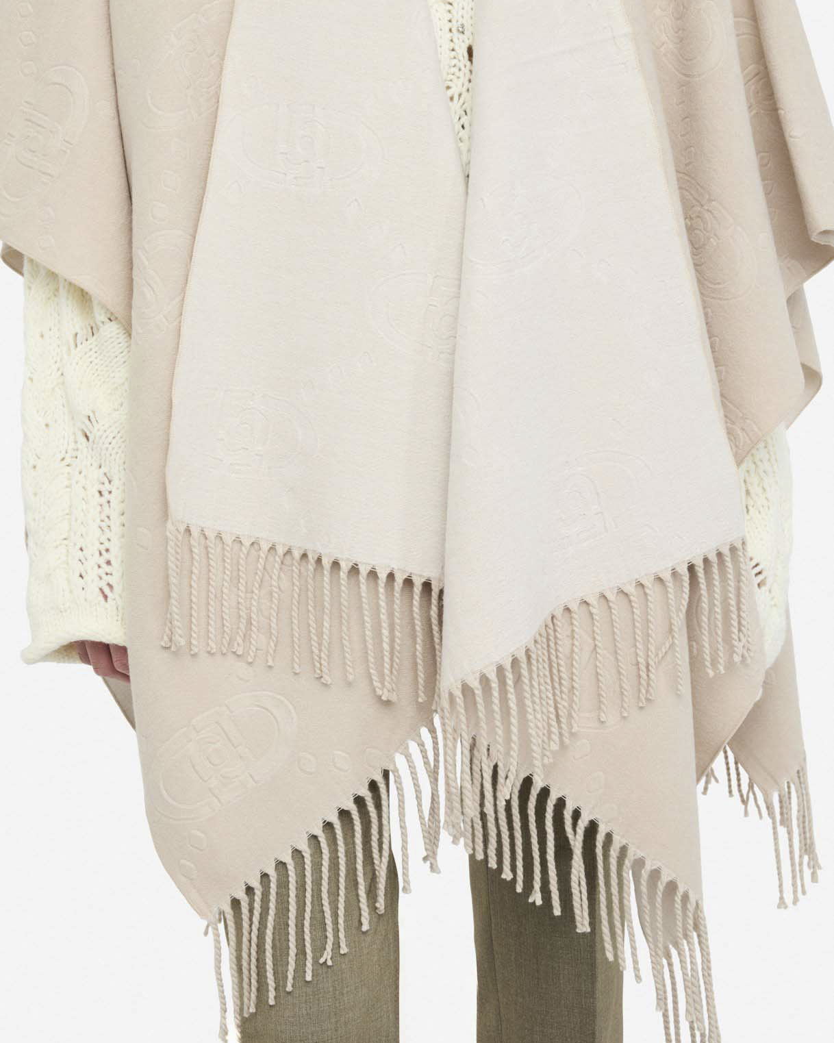 Mantella Liu Jo Accessories cammello con frange e lavorazione rilievo