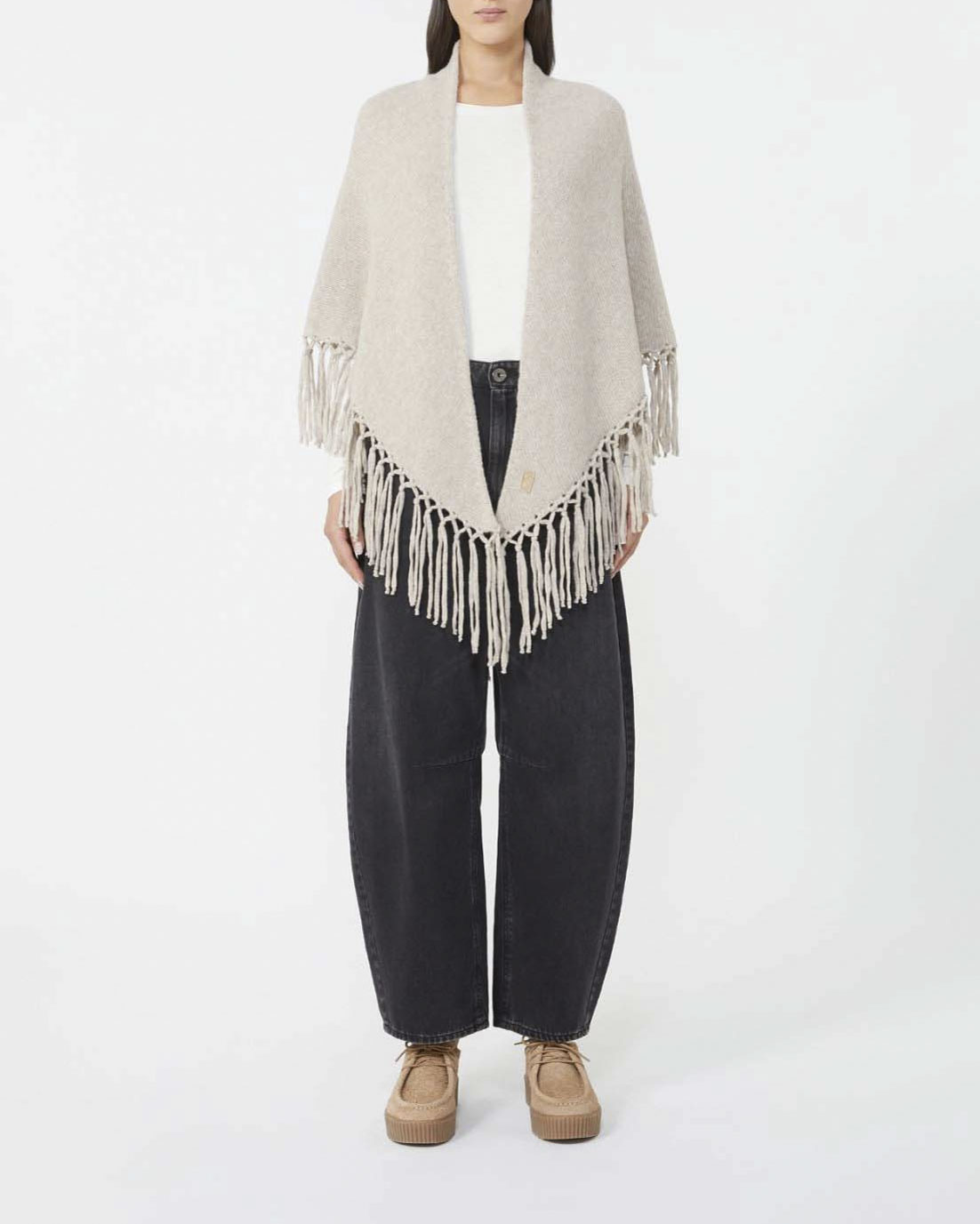 Scialle in lana Weekend Max Mara color sabbia con frange applicate al fondo
