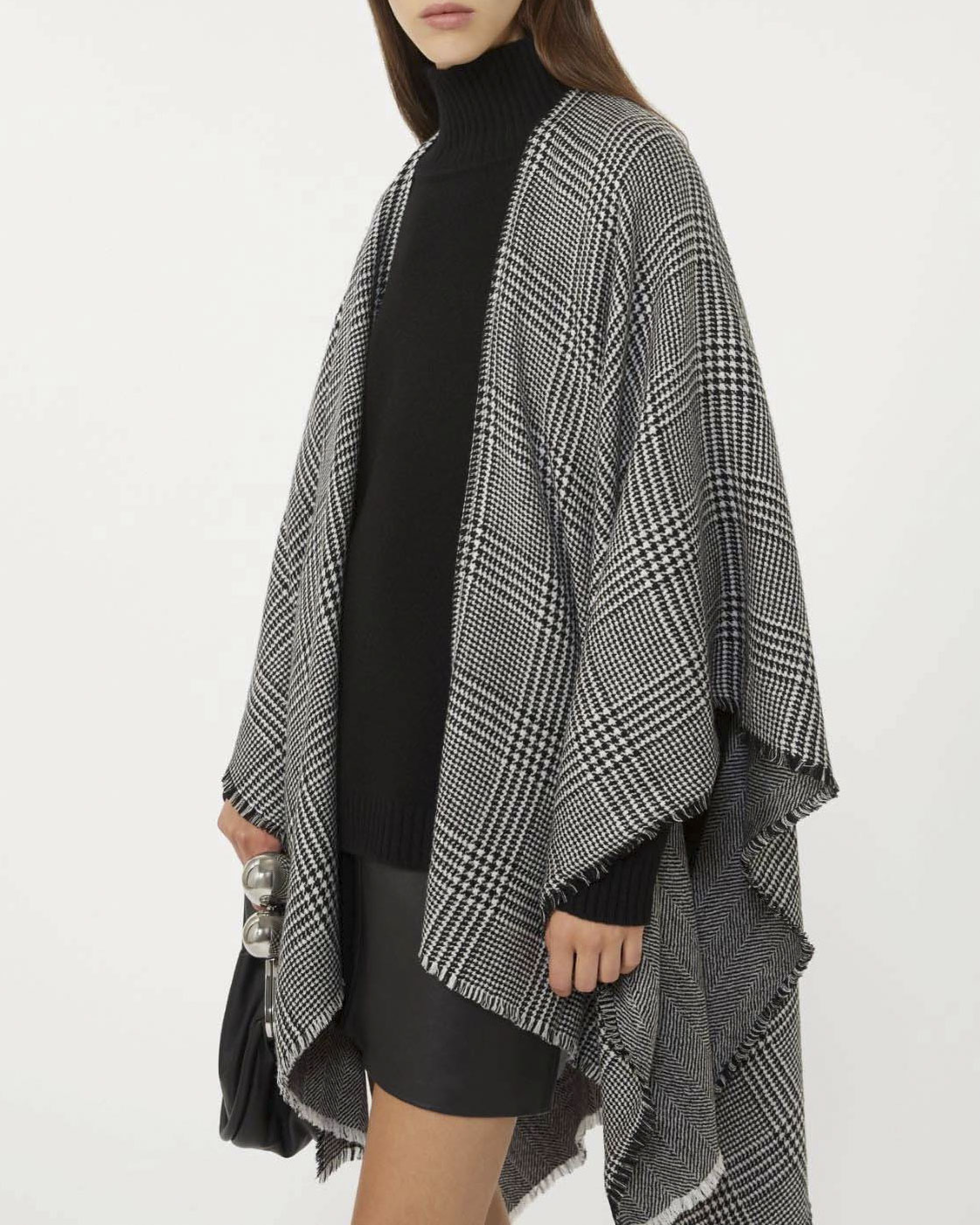 Mantella in lana reversibile Weekend Max Mara a fantasia pied de poule bianca e nera