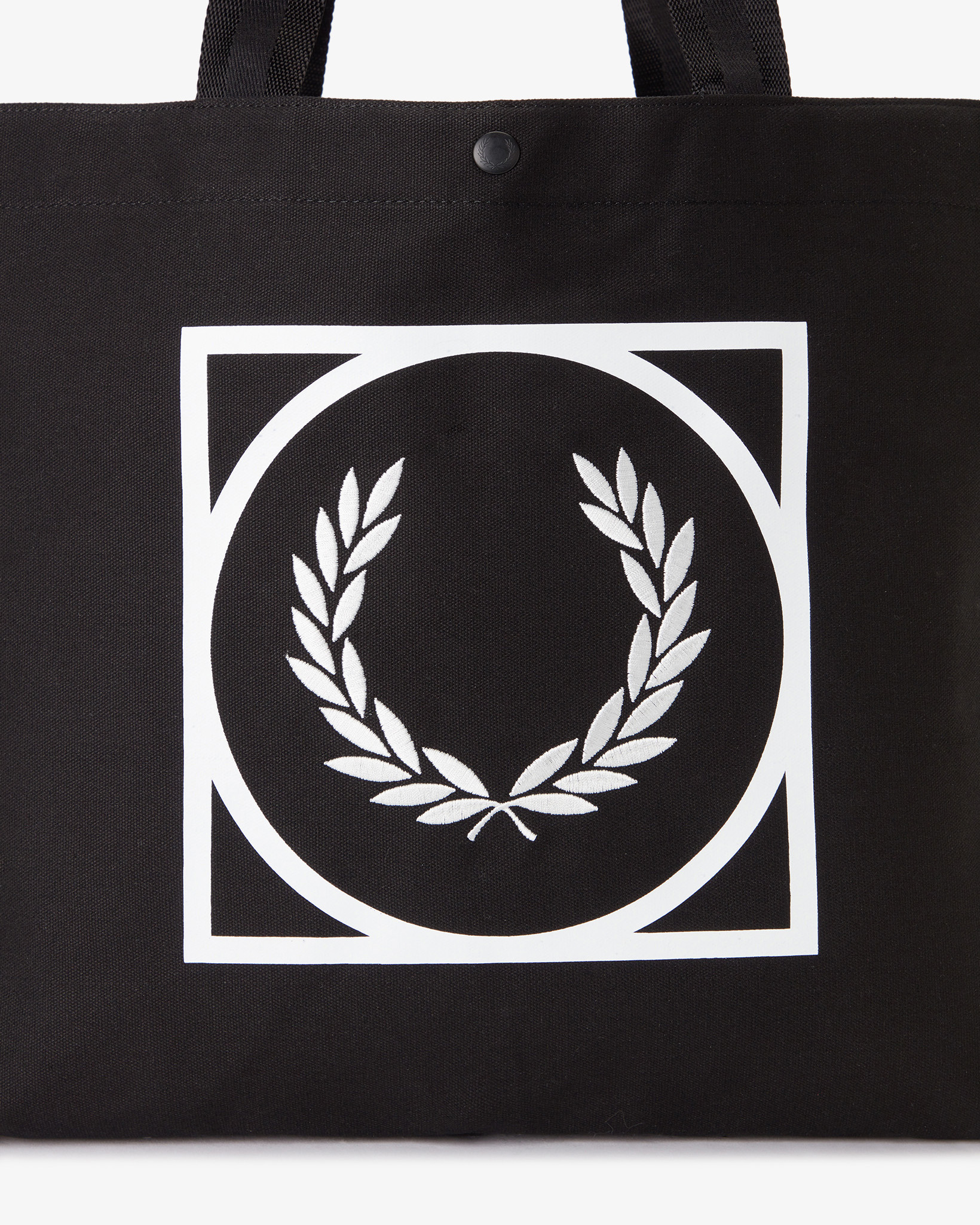 Tote bag nera in tela di cotone con maxi stampa logo -20%