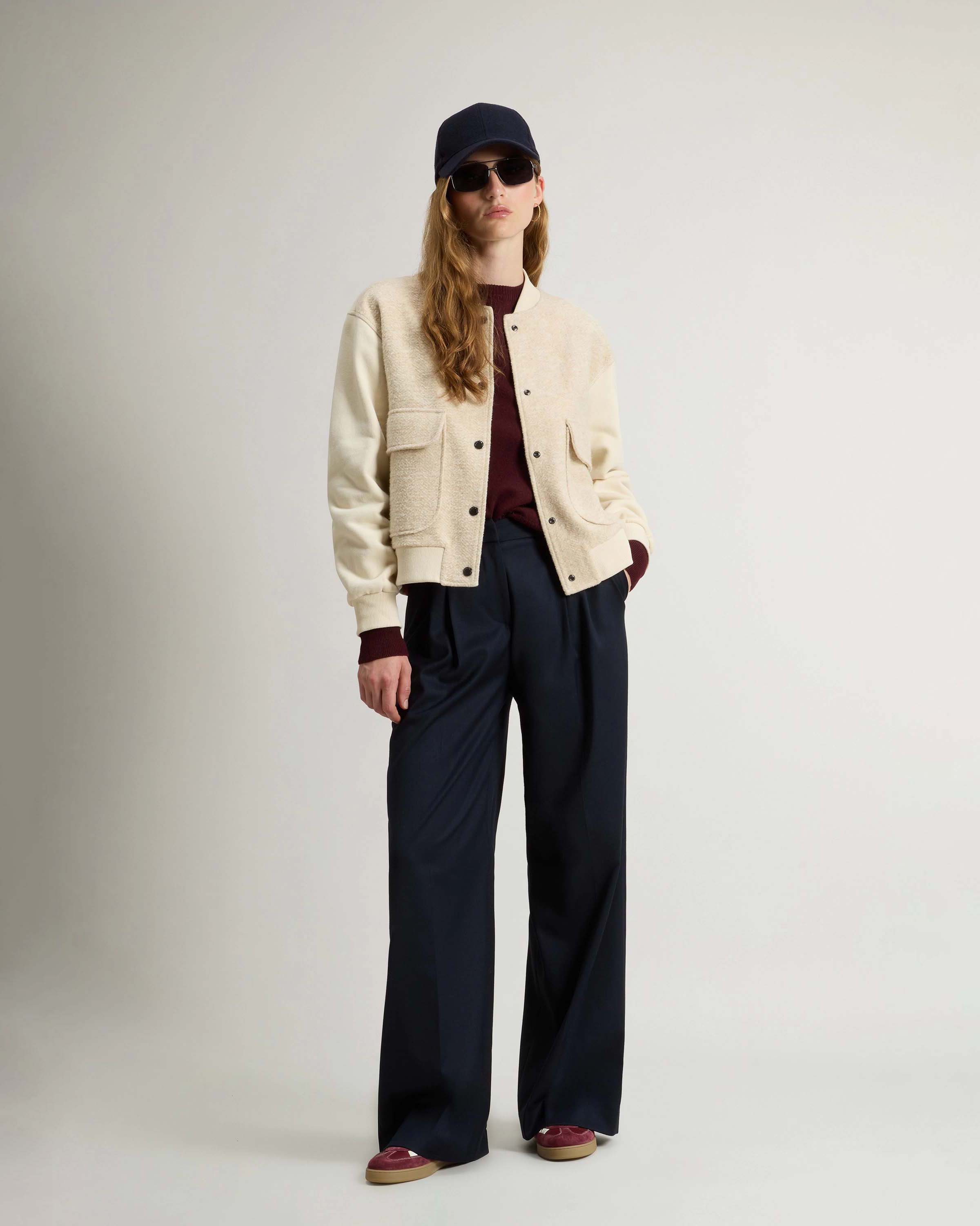 Bomber color latte Woolrich in felpa di cotone con parte anteriore in lana