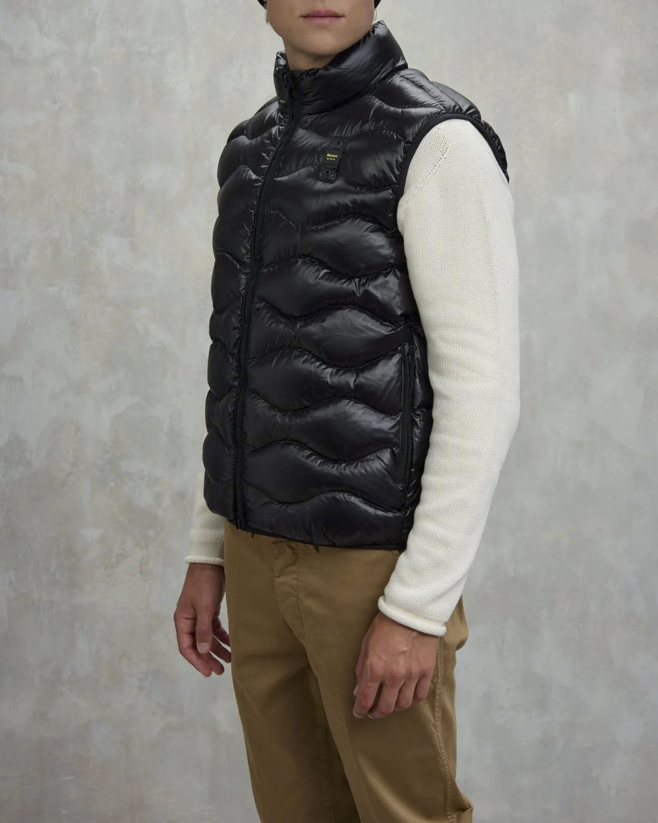 Gilet Danny Blauer nero in nylon trapuntato ad onde e imbottito in ovatta Sorona® Aura