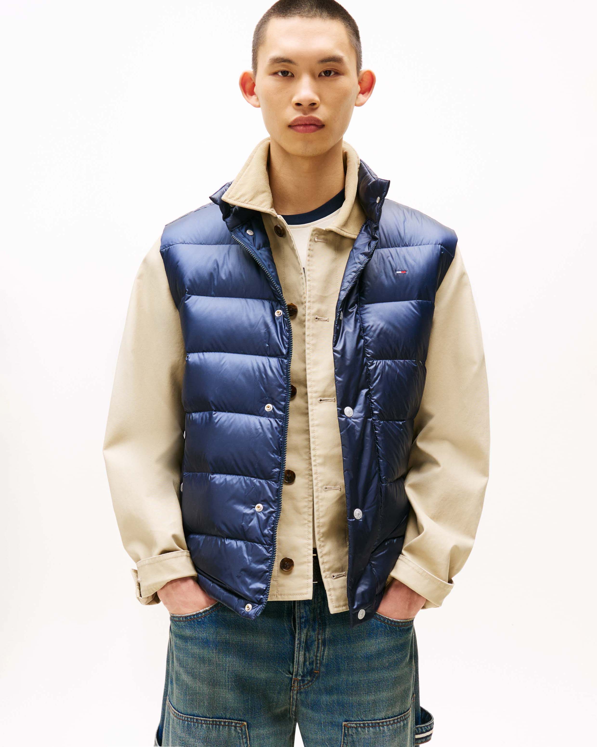 Piumino gilet Tommy Jeans blu in nylon imbottito in piuma con chiusura a bottoni
