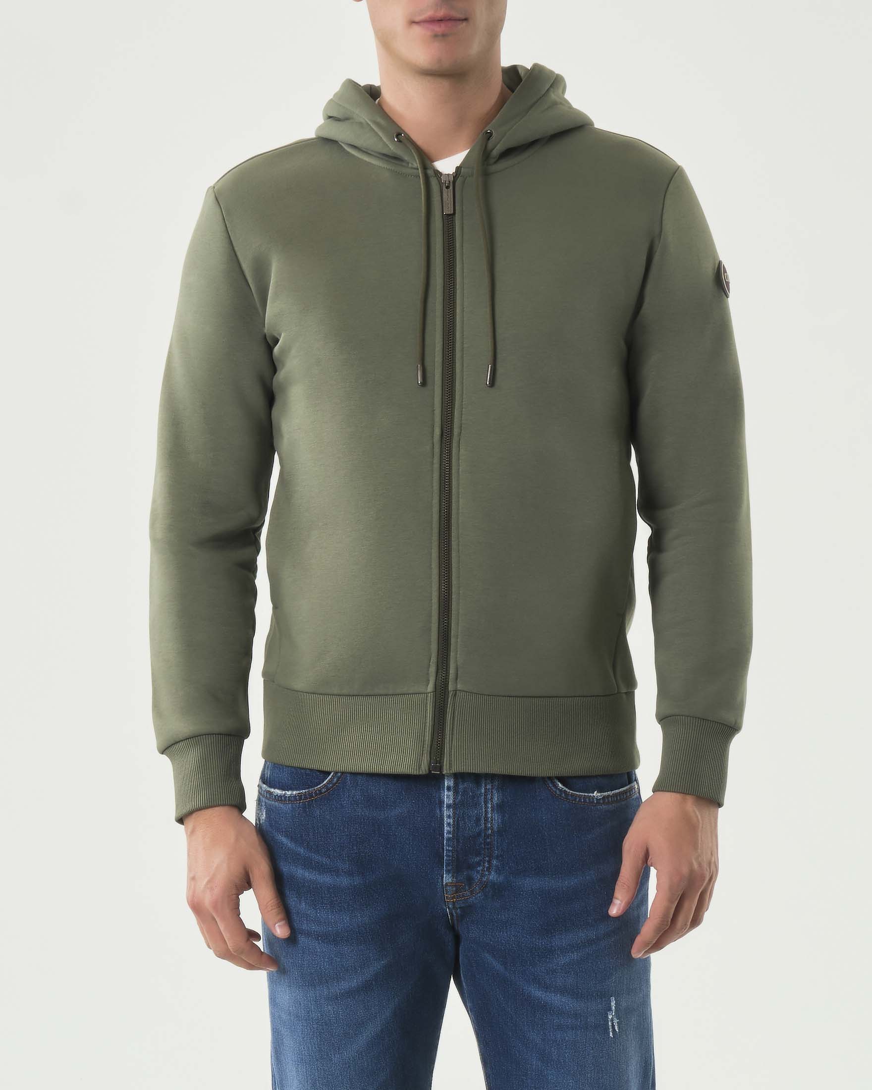 Felpa Colmar Originals verde militare con cappuccio chiusura zip e logo bollo applicato sulla manica