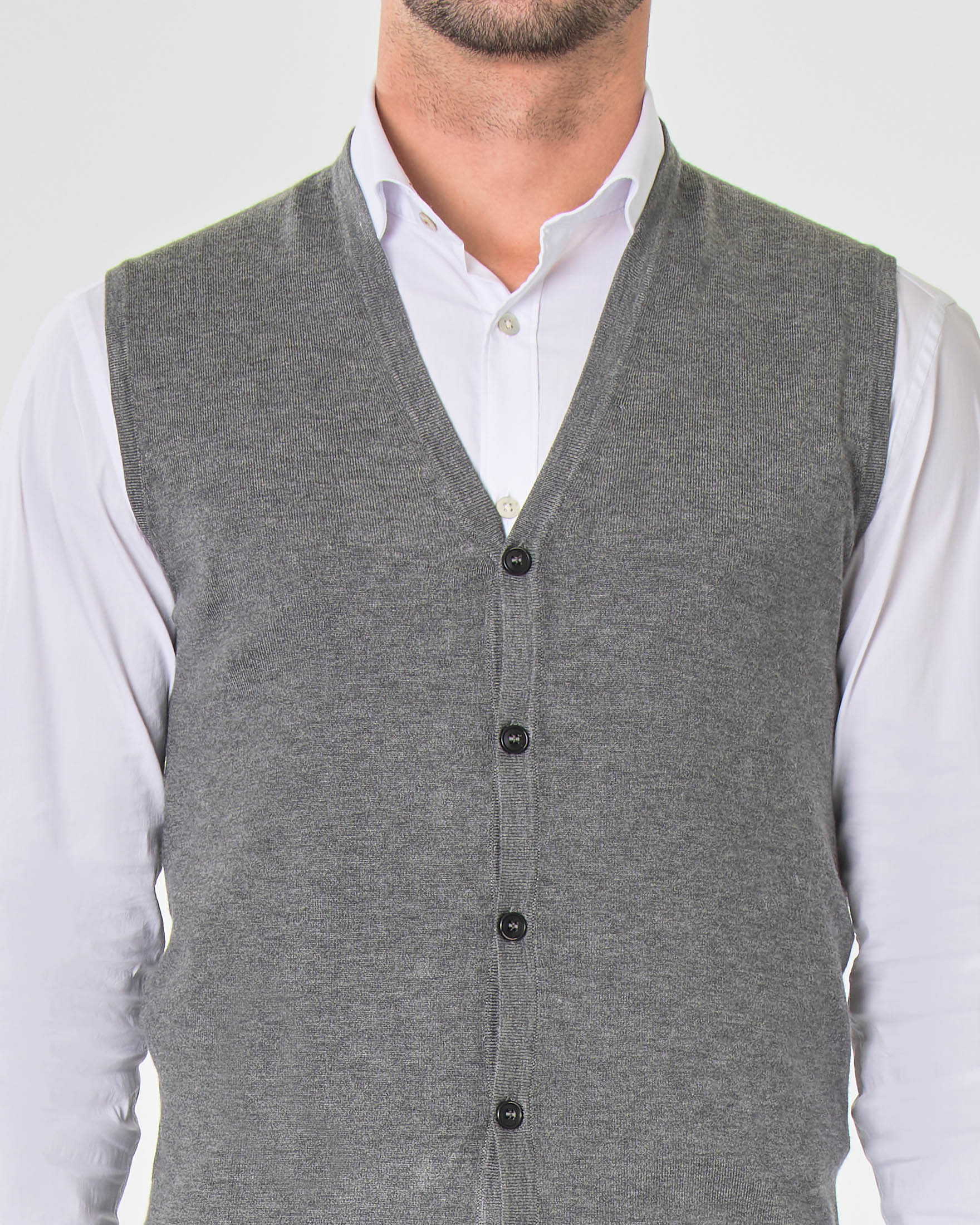 Gilet Pellizzari grigio in pura lana merino con chiusura a bottoni