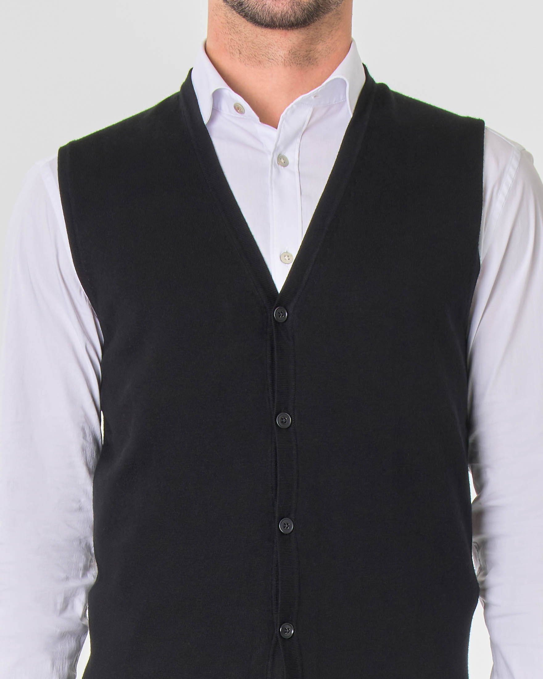 Gilet Pellizzari nero in pura lana merino con chiusura a bottoni