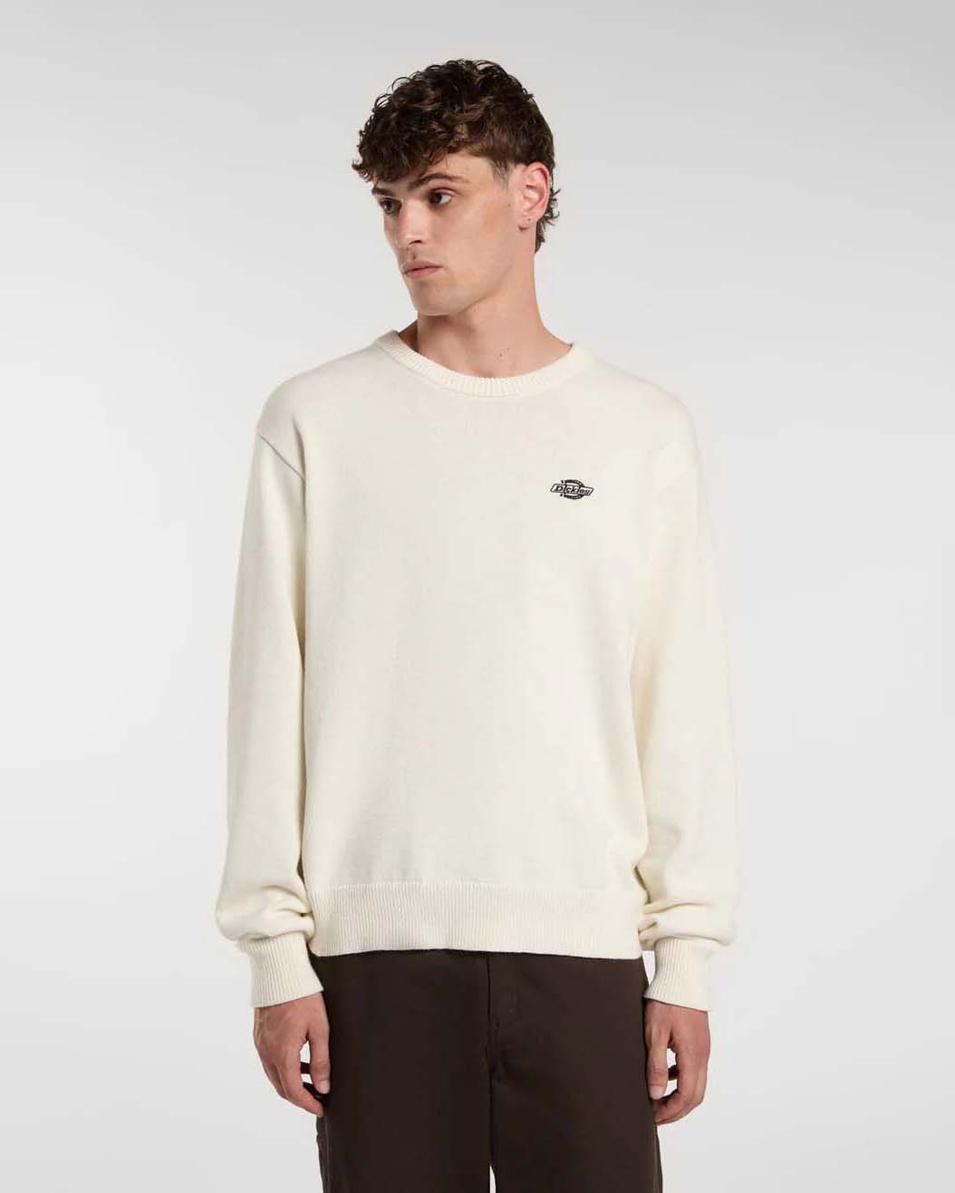 Maglia girocollo relaxed-fit Dickies panna in puro cotone
