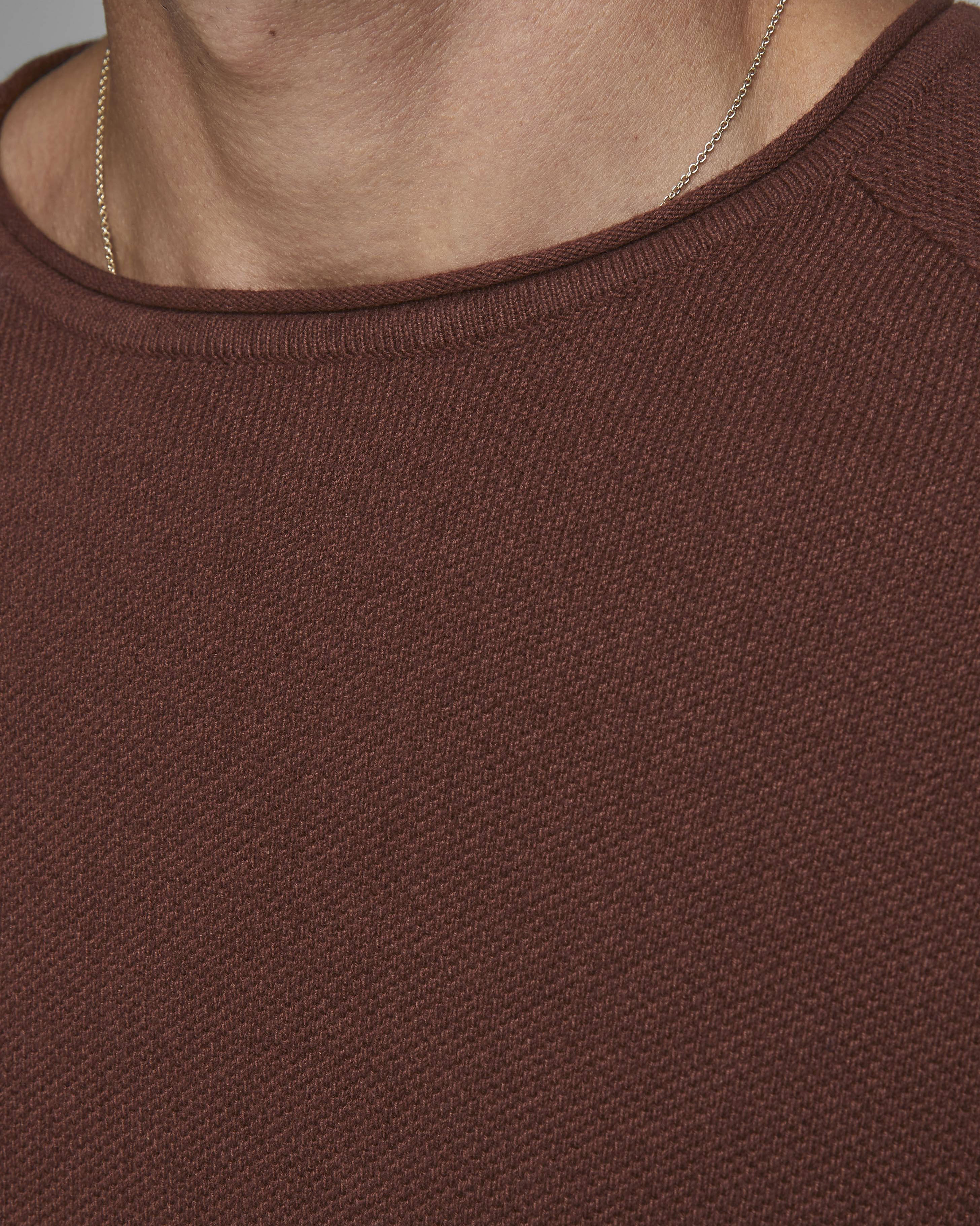 Maglione girocollo Jack & Jones marrone in cotone con lavorazione a coste ondulate