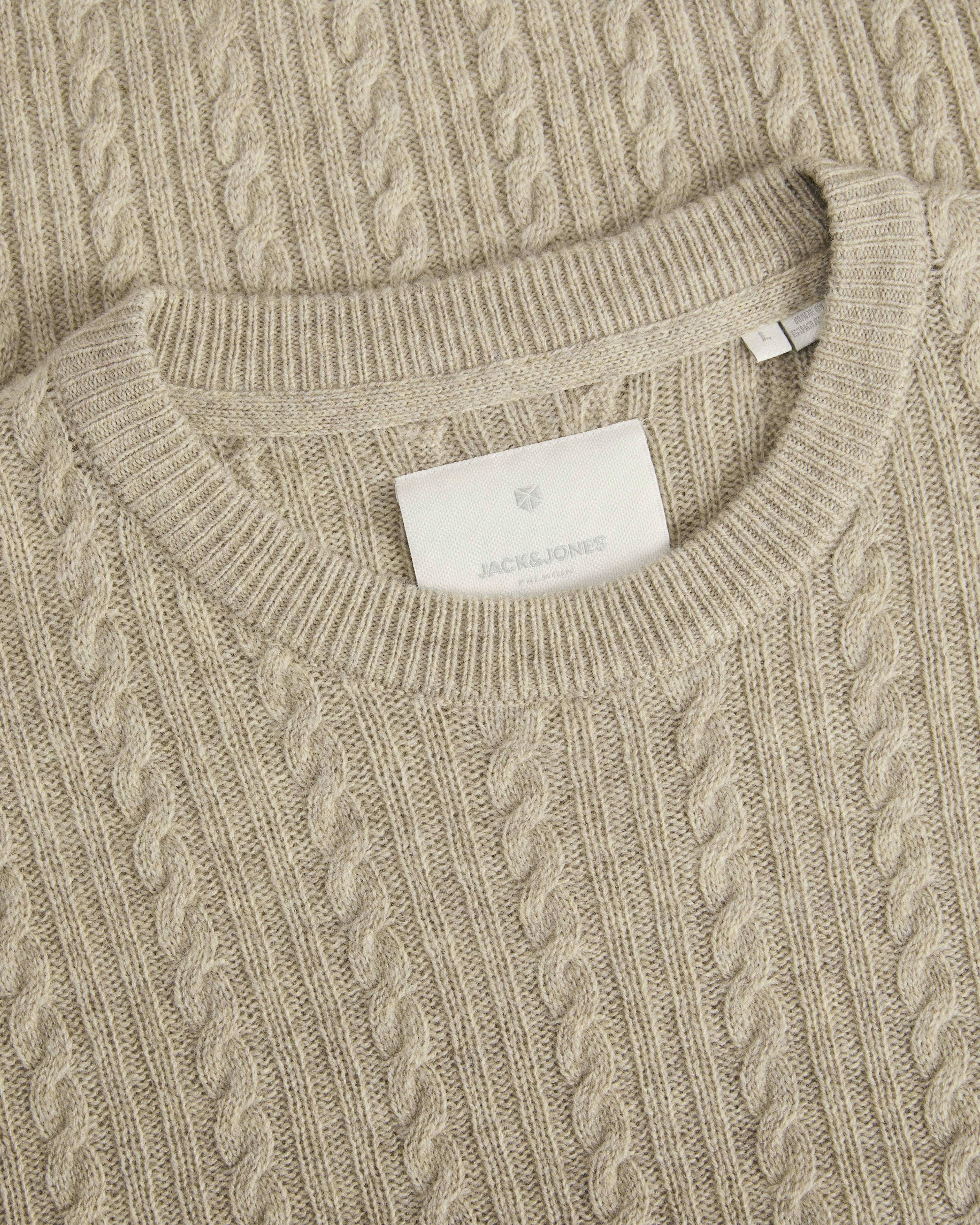 Maglione girocollo Jack & Jones beige in lana con lavorazione a trecce