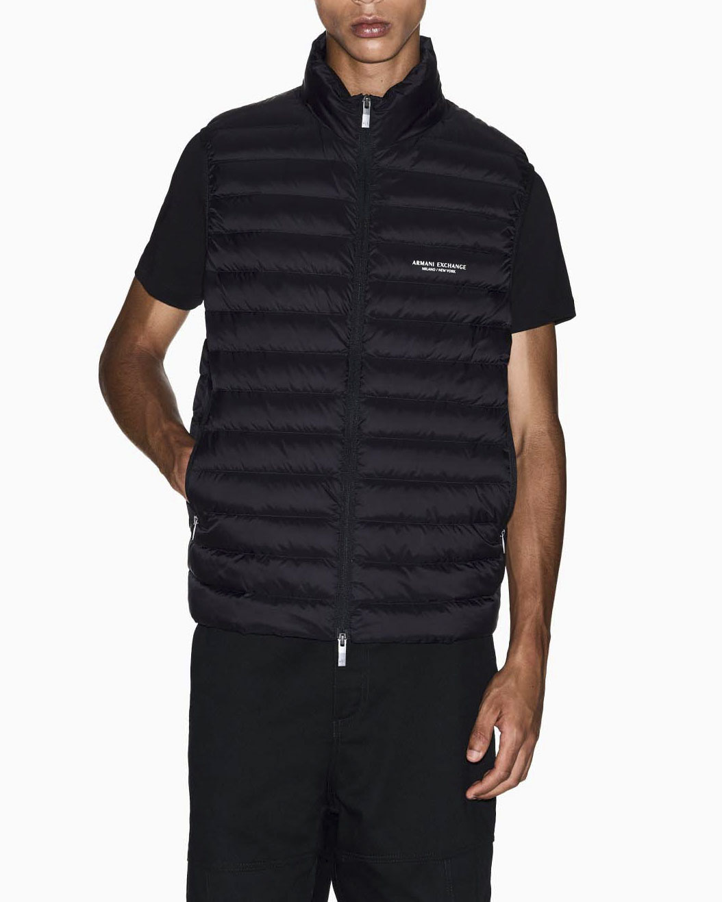 Piumino smanicato Armani Exchange nero con logo stampato