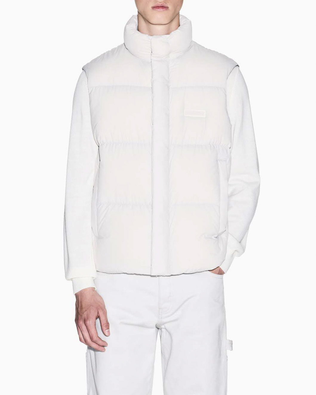 Piumino gilet Armani Exchange gesso in nylon opaco con imbottitura in piuma d'anatra