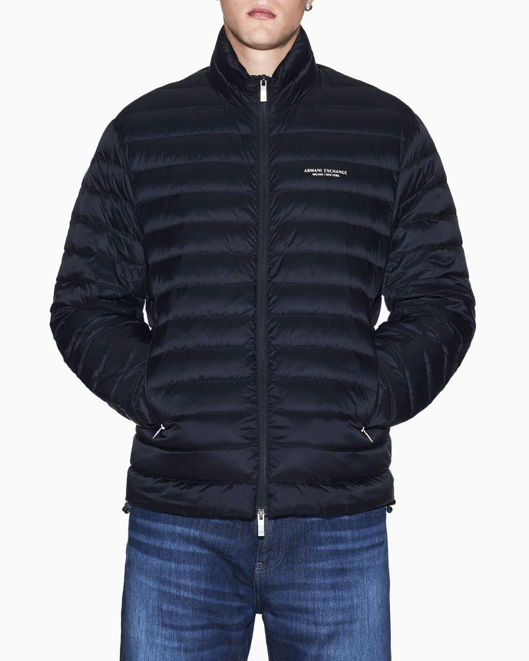 Piumino Armani Exchange blu con logo piccolo stampato
