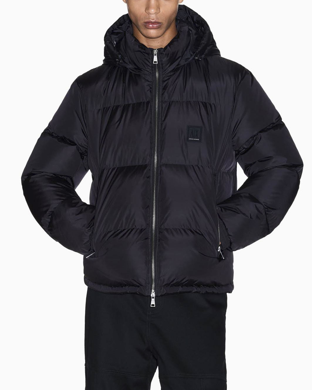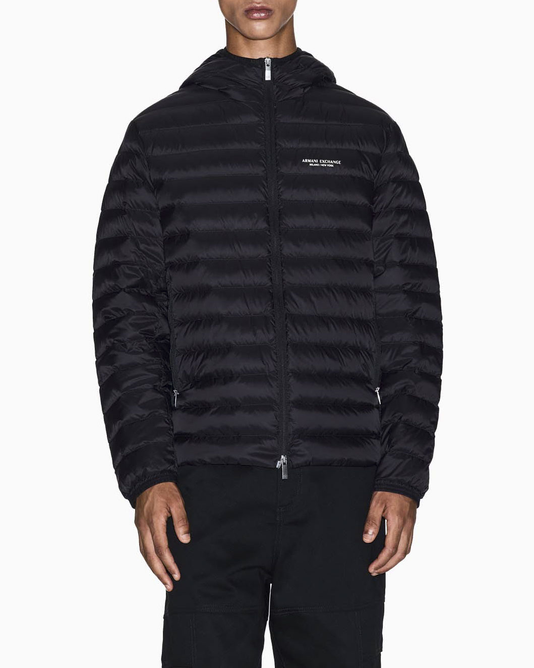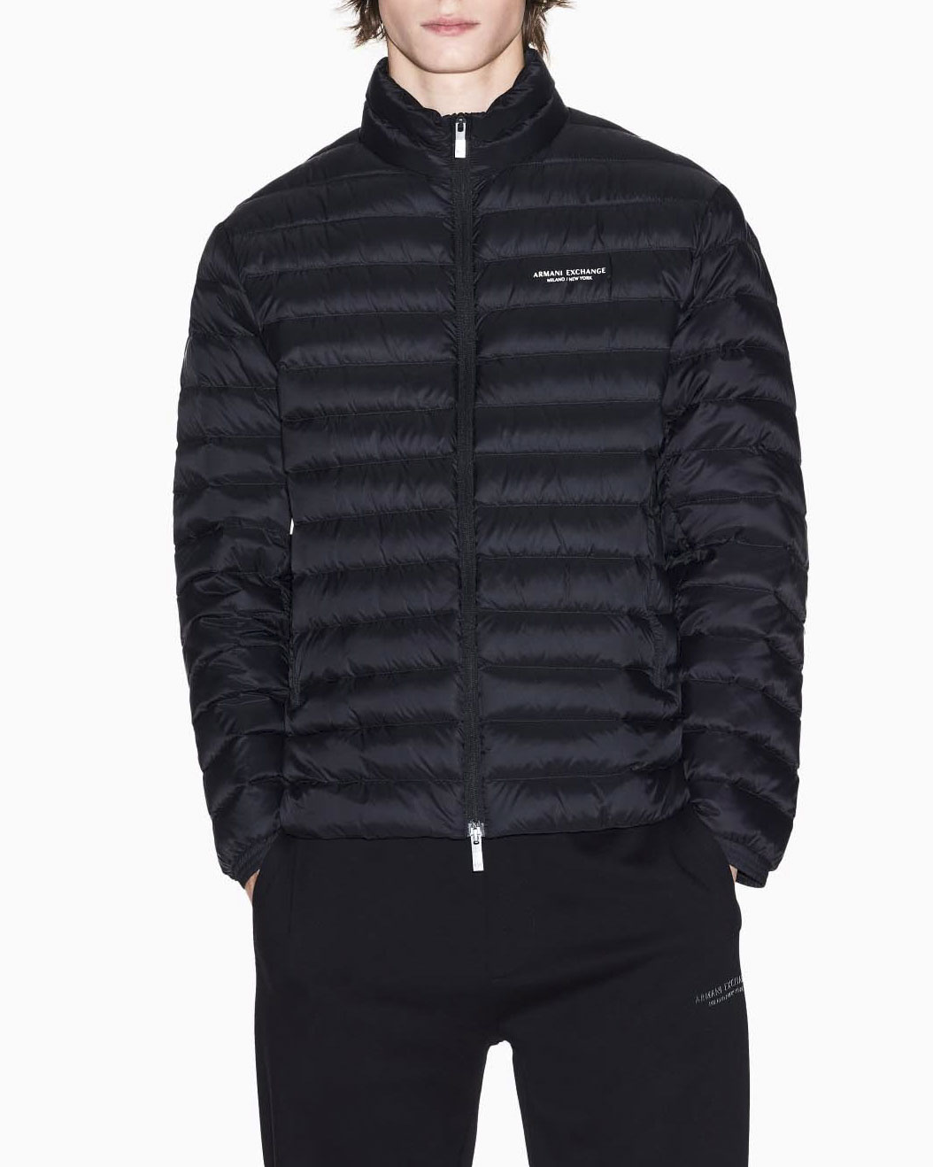 Piumino Armani Exchange nero con logo piccolo stampato