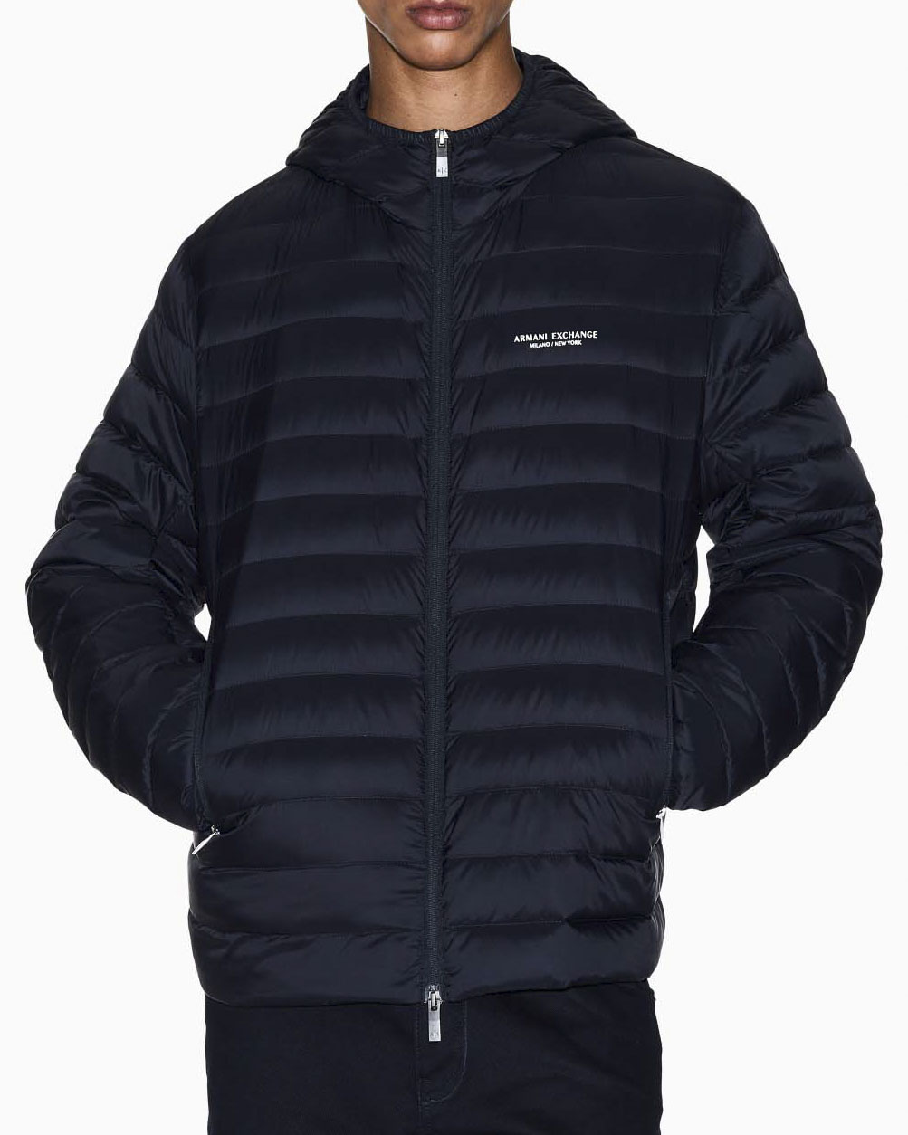 Piumino Armani Exchange nero con cappuccio e logo piccolo stampato