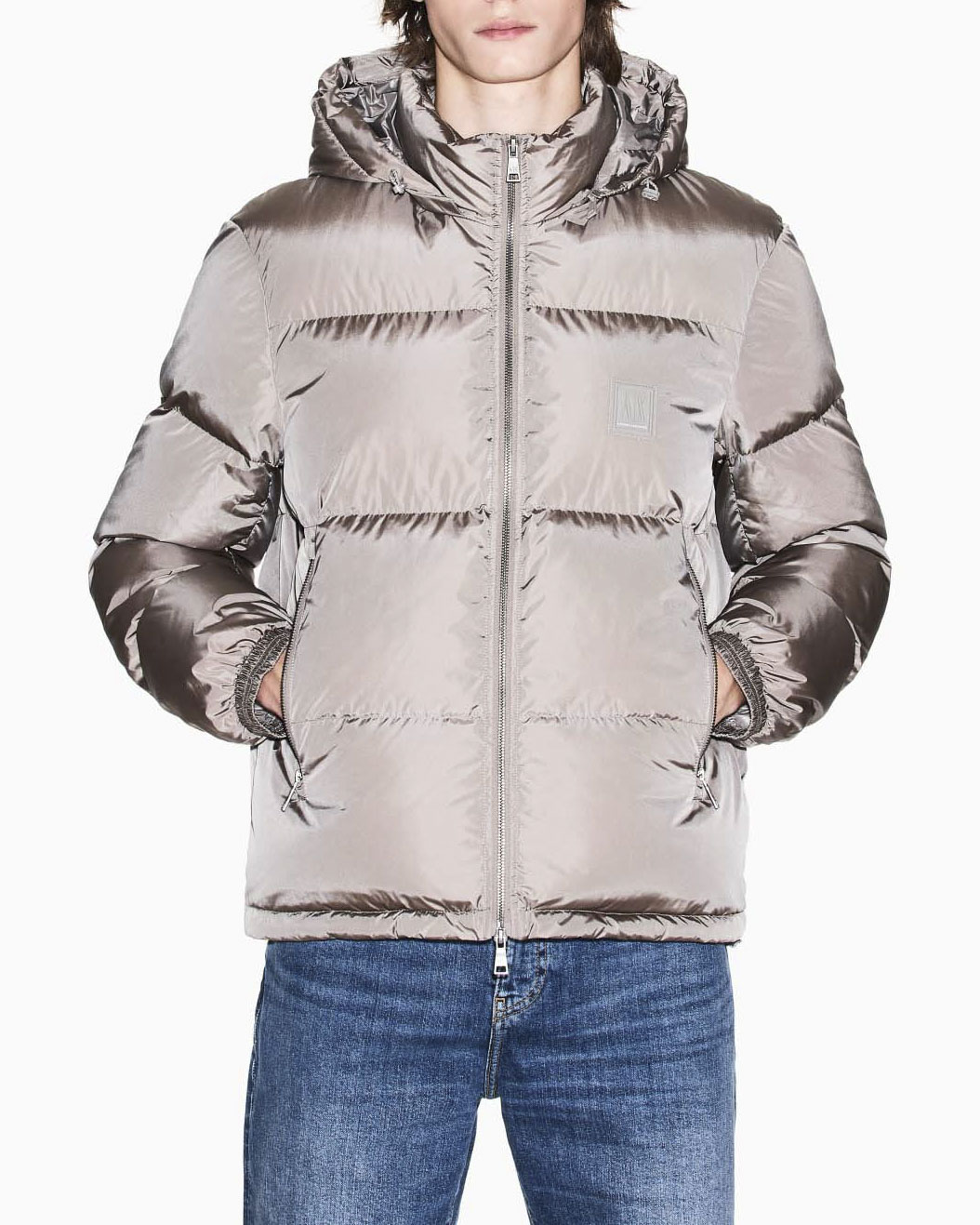 Piumino Armani Exchange fango con cappuccio staccabile