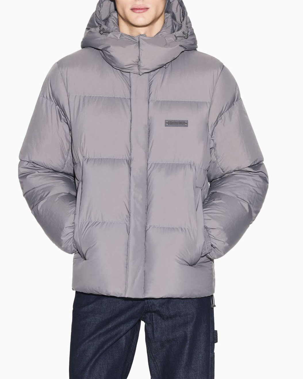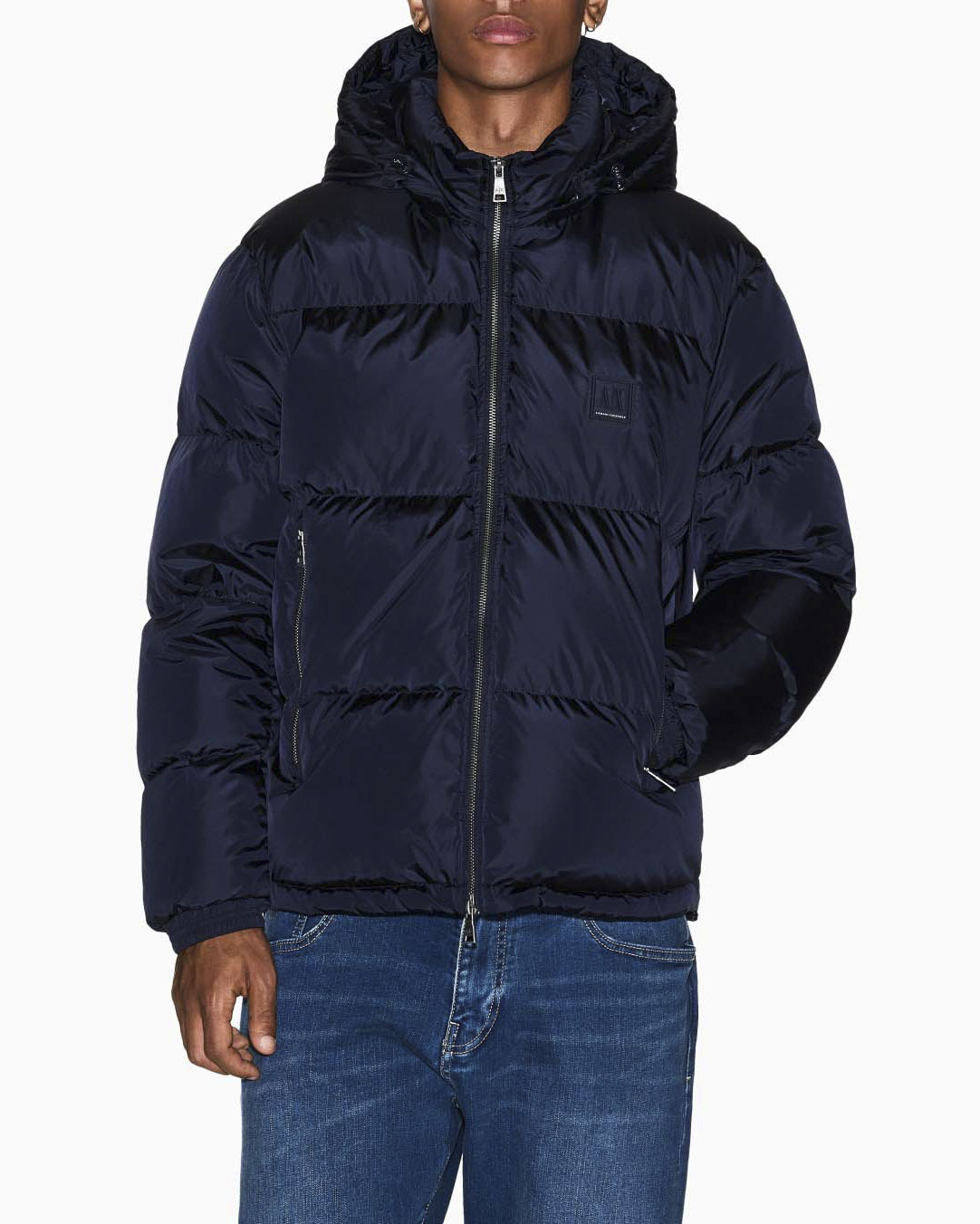 Piumino Armani Exchange blu con cappuccio e logo piccolo stampato