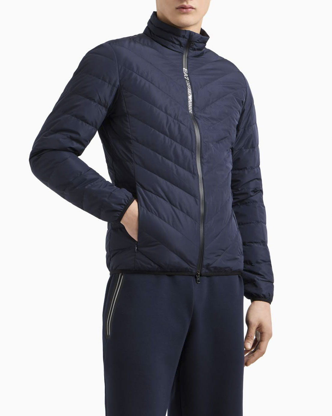 Piumino EA7 blu senza cappuccio con trapuntatura spinata