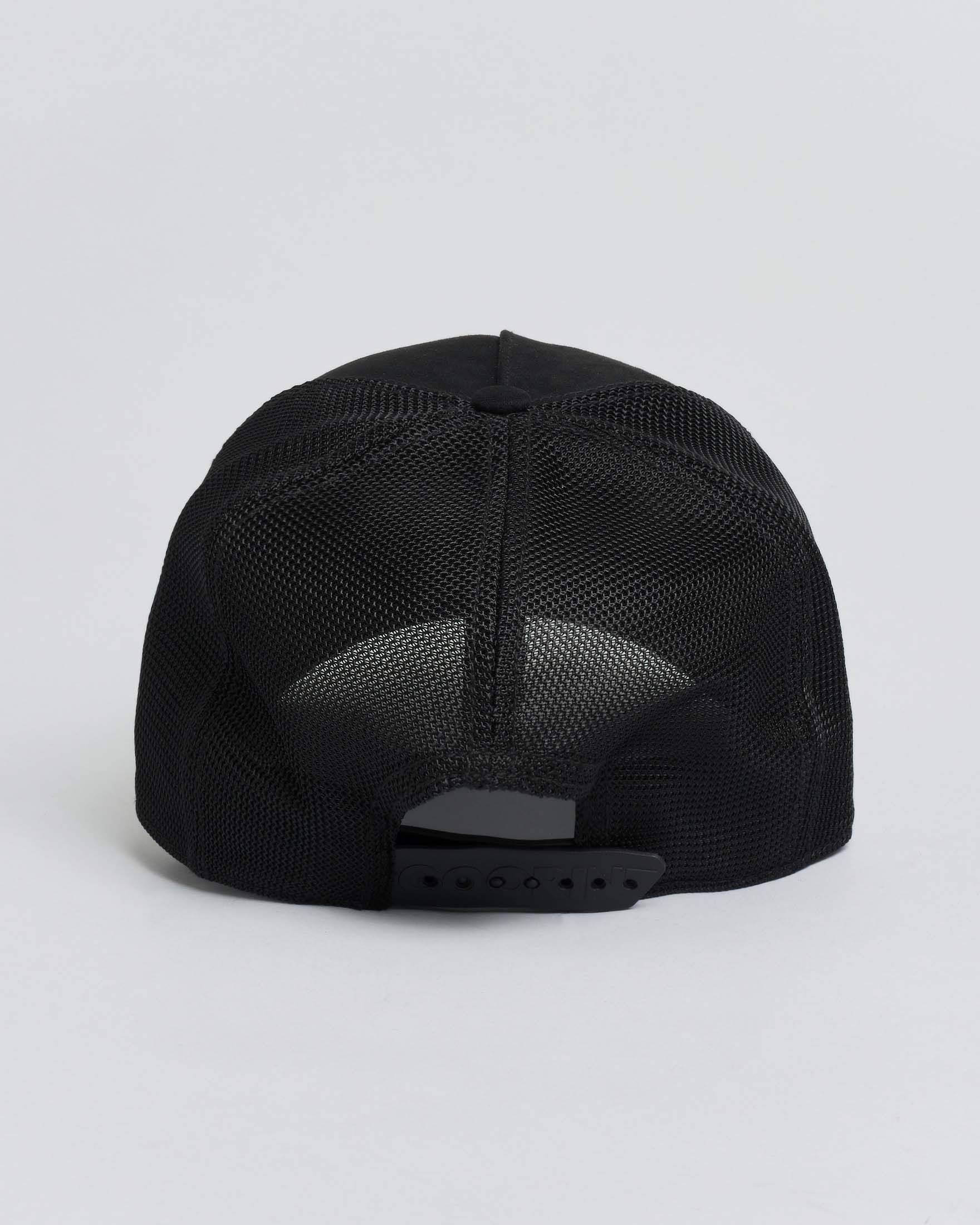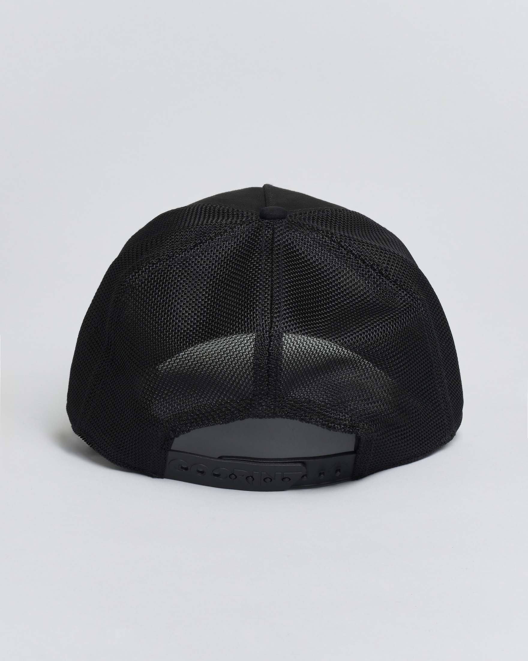Berretto Goorin Bros trucker Dagger nero con patch in similpelle oro