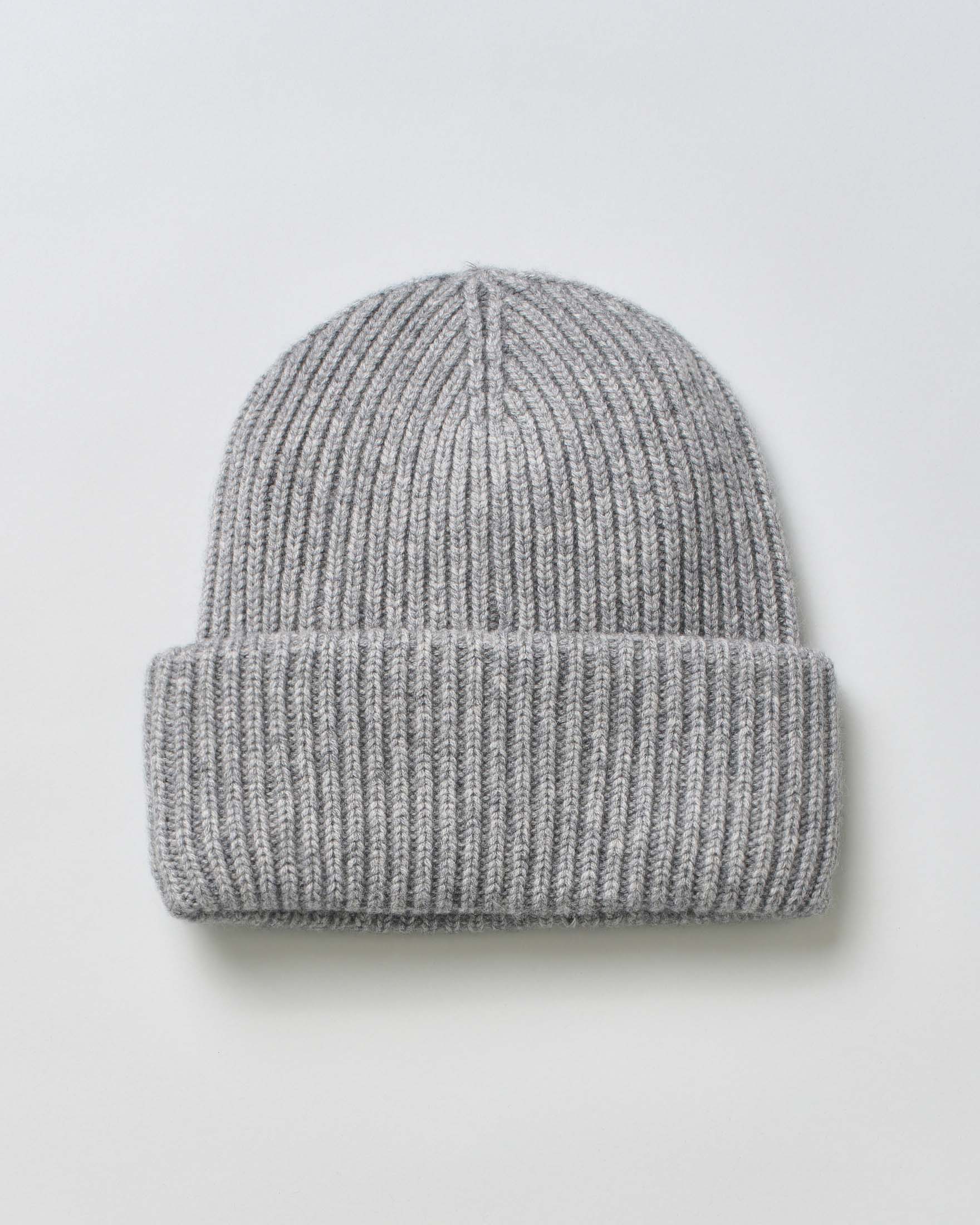 Berretto grigio MC2 Saint Barth in lana e cashmere a coste con patch logo cucito sul risvolto