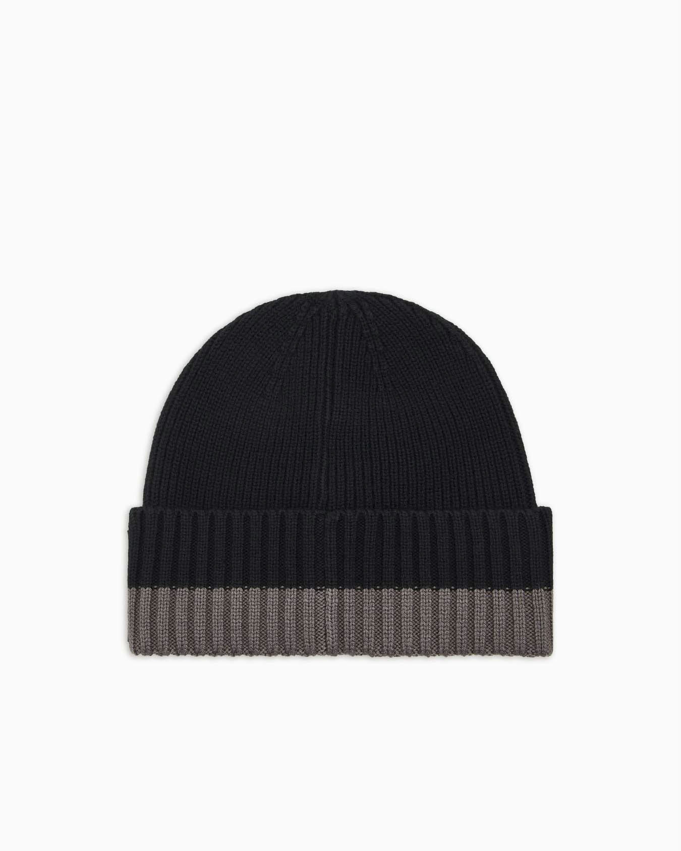 Berretto Armani Exchange nero e grigio in misto lana con logo applicato