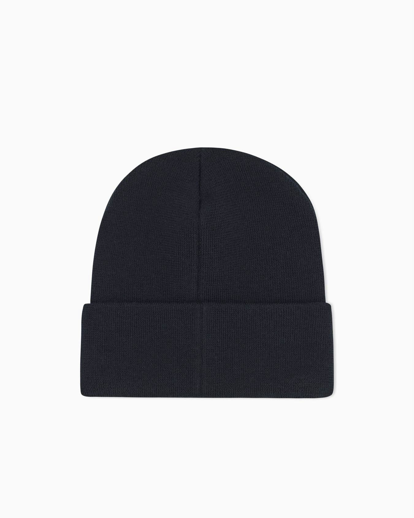 Berretto Armani Exchange nero in maglia con logo ricamato sul risvolto