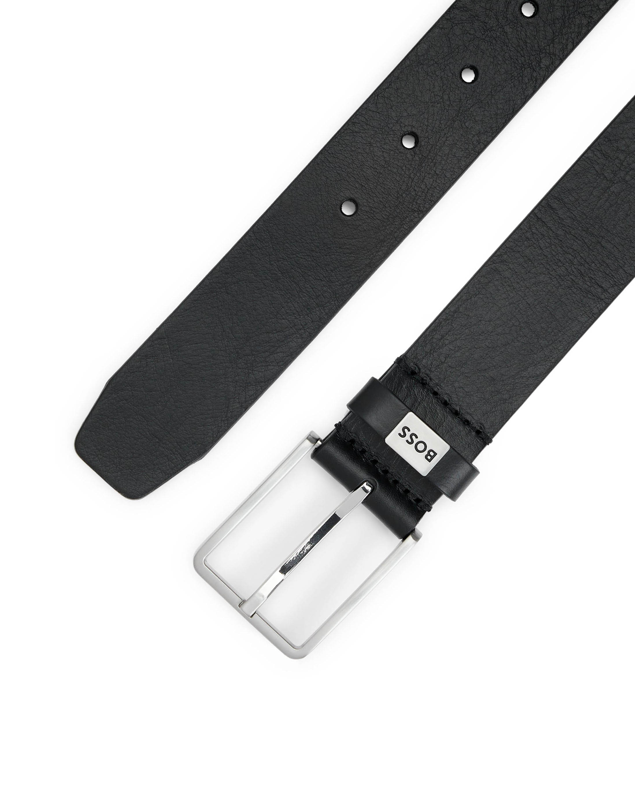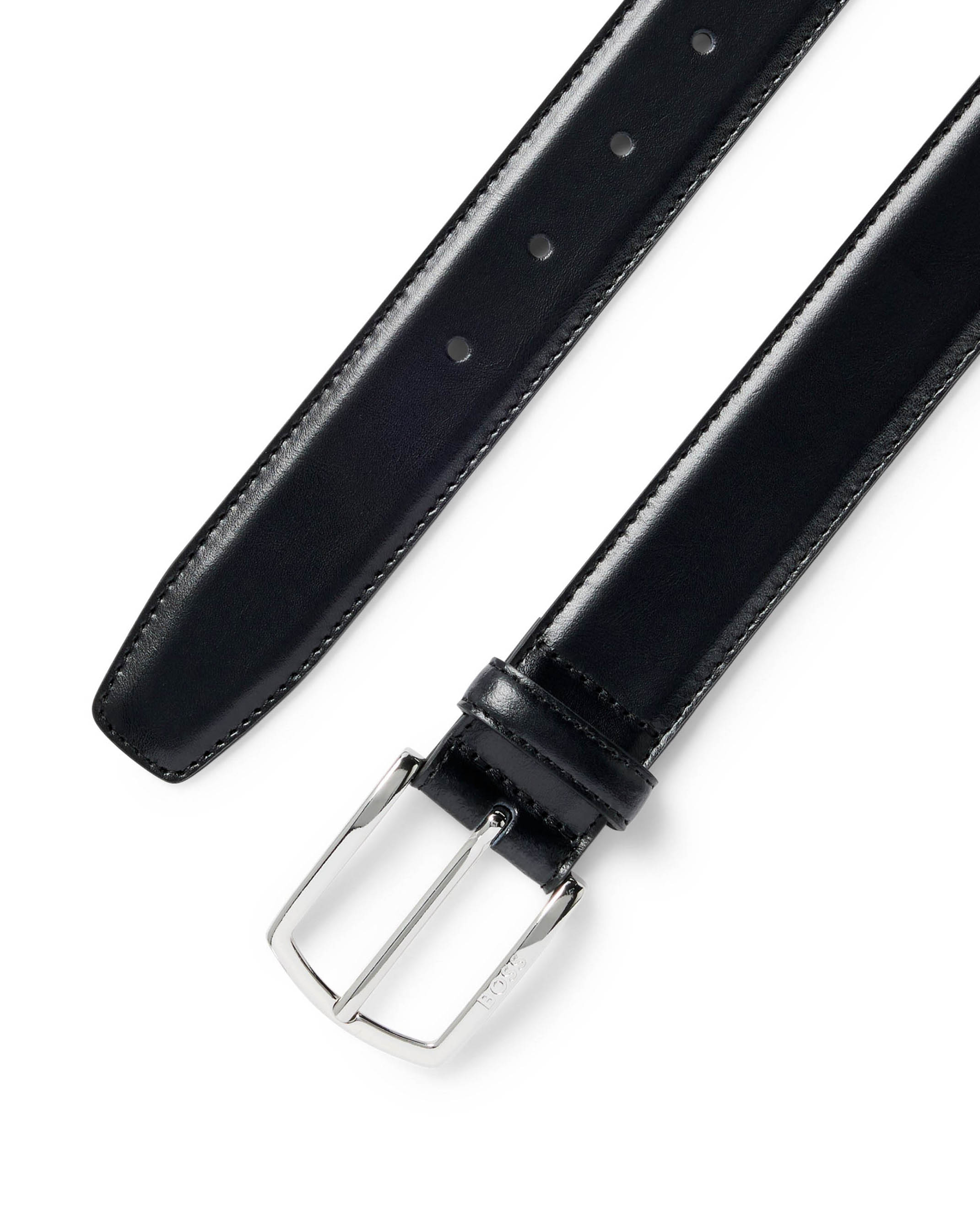 Cintura Boss Elio nera in vera pelle con fibbia argento