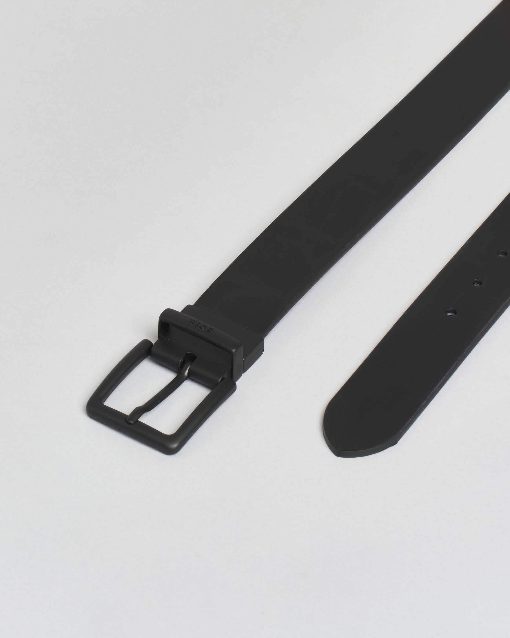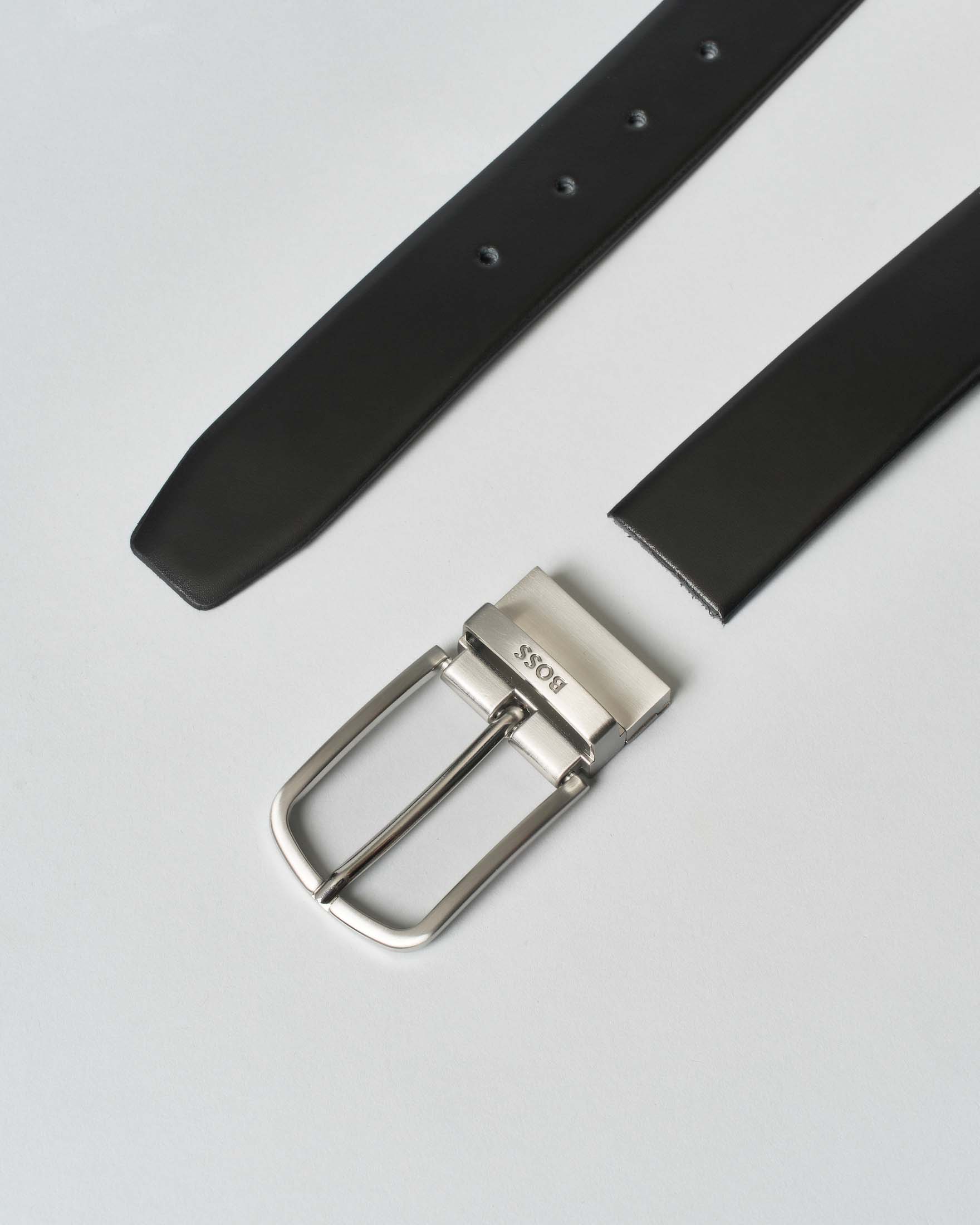 Cintura Boss in vera pelle nera liscia reversibile in martellata