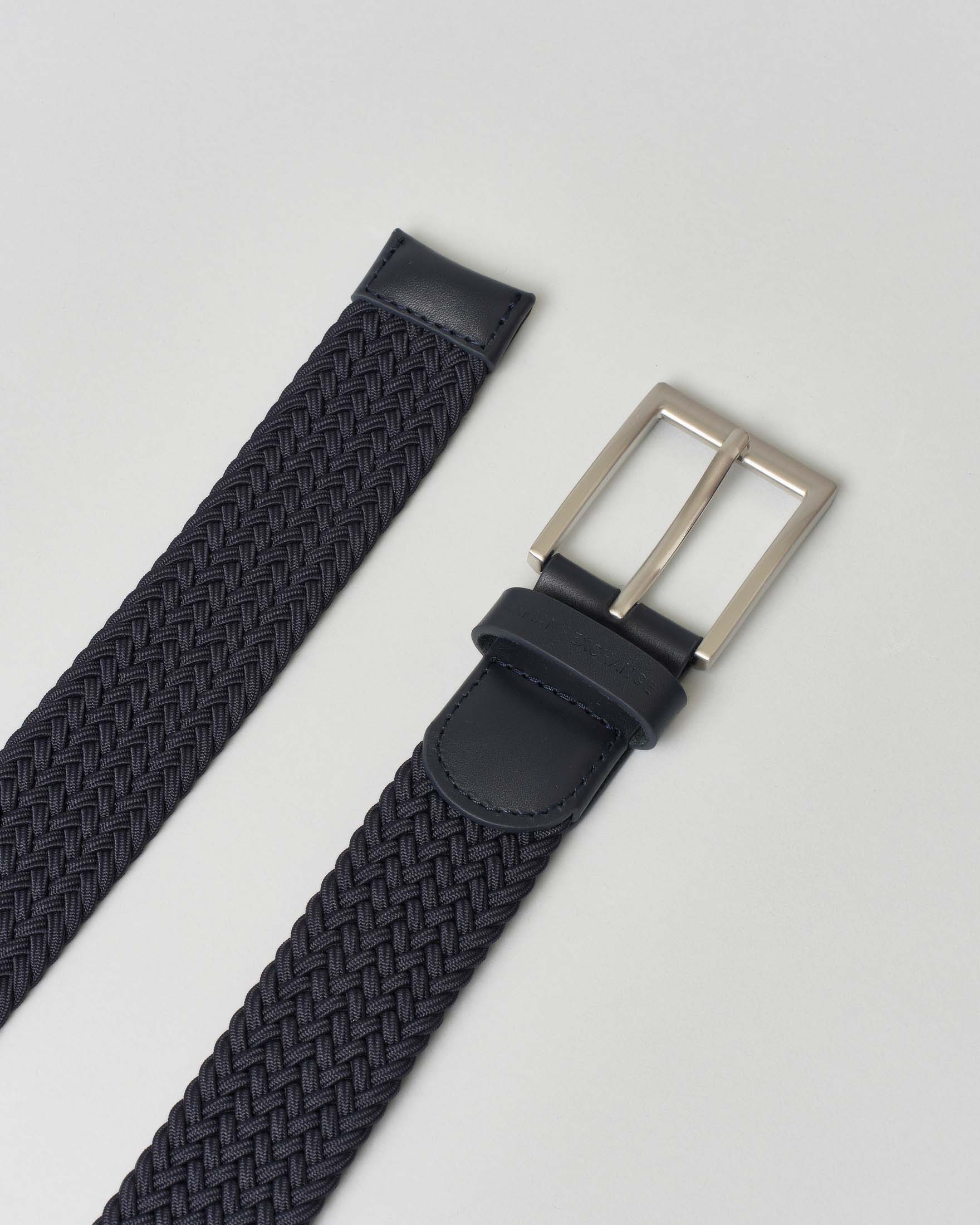Cintura Armani Exchange blu in tessuto intrecciato con dettagli in pelle