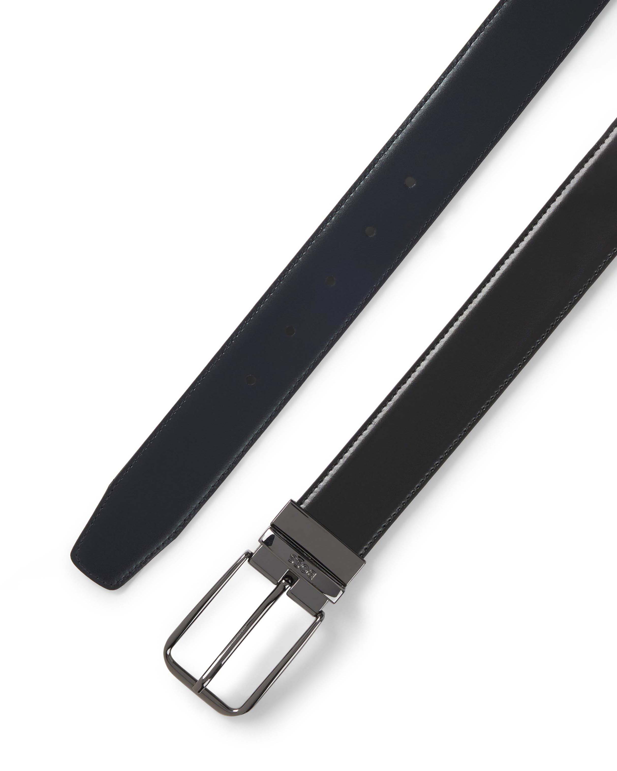 Cintura Boss in vera pelle nera reversibile in blu
