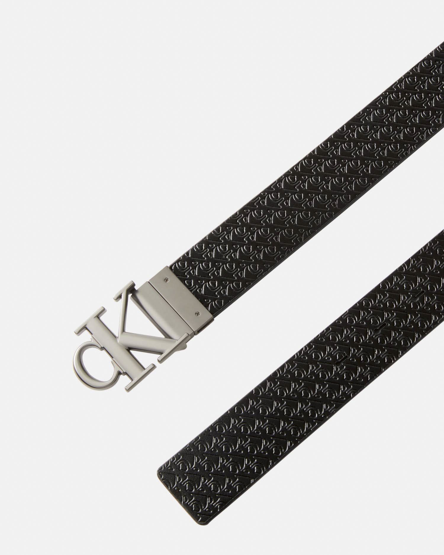 Cintura Calvin Klein Jeans nera in pelle con logo monogramma in rilievo all over