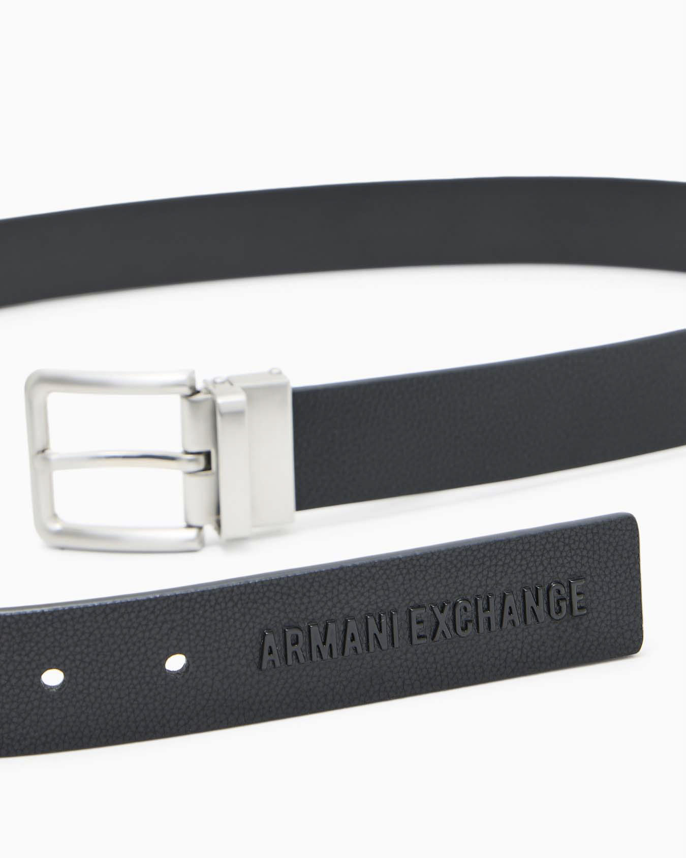 Cintura Armani Exchange nera in pelle con logo inciso sulla passante