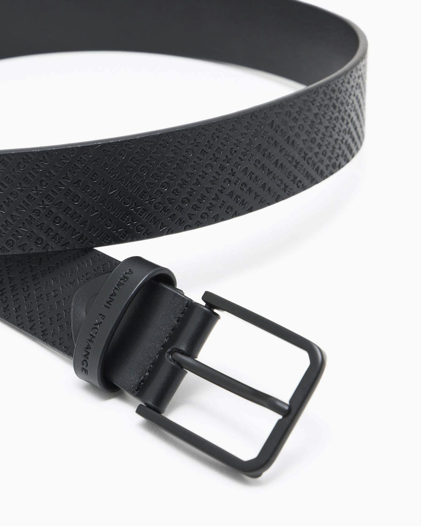 Cintura Armani Exchange nera in pelle con logo impresso sulla fibbia e sulla superficie
