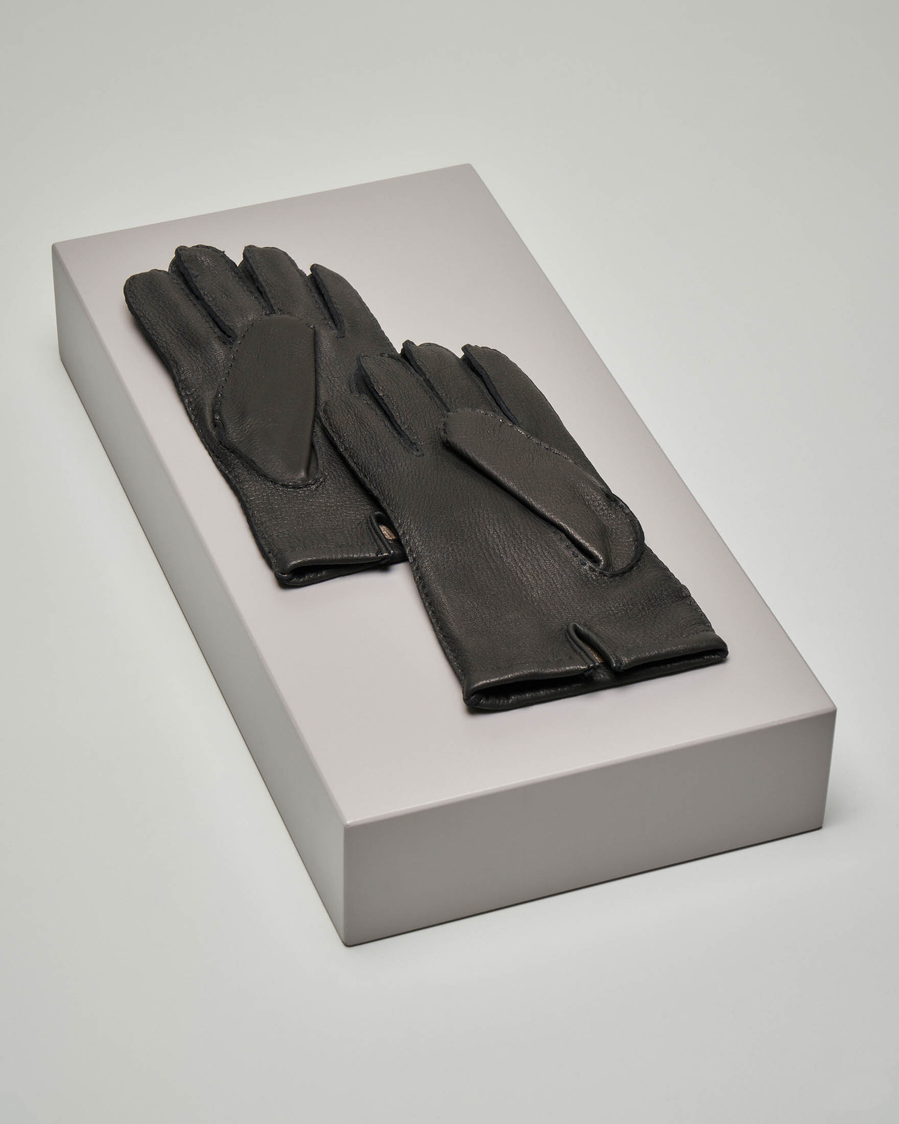Guanti Pellizzari neri in pelle liscia con cinturino regolabile