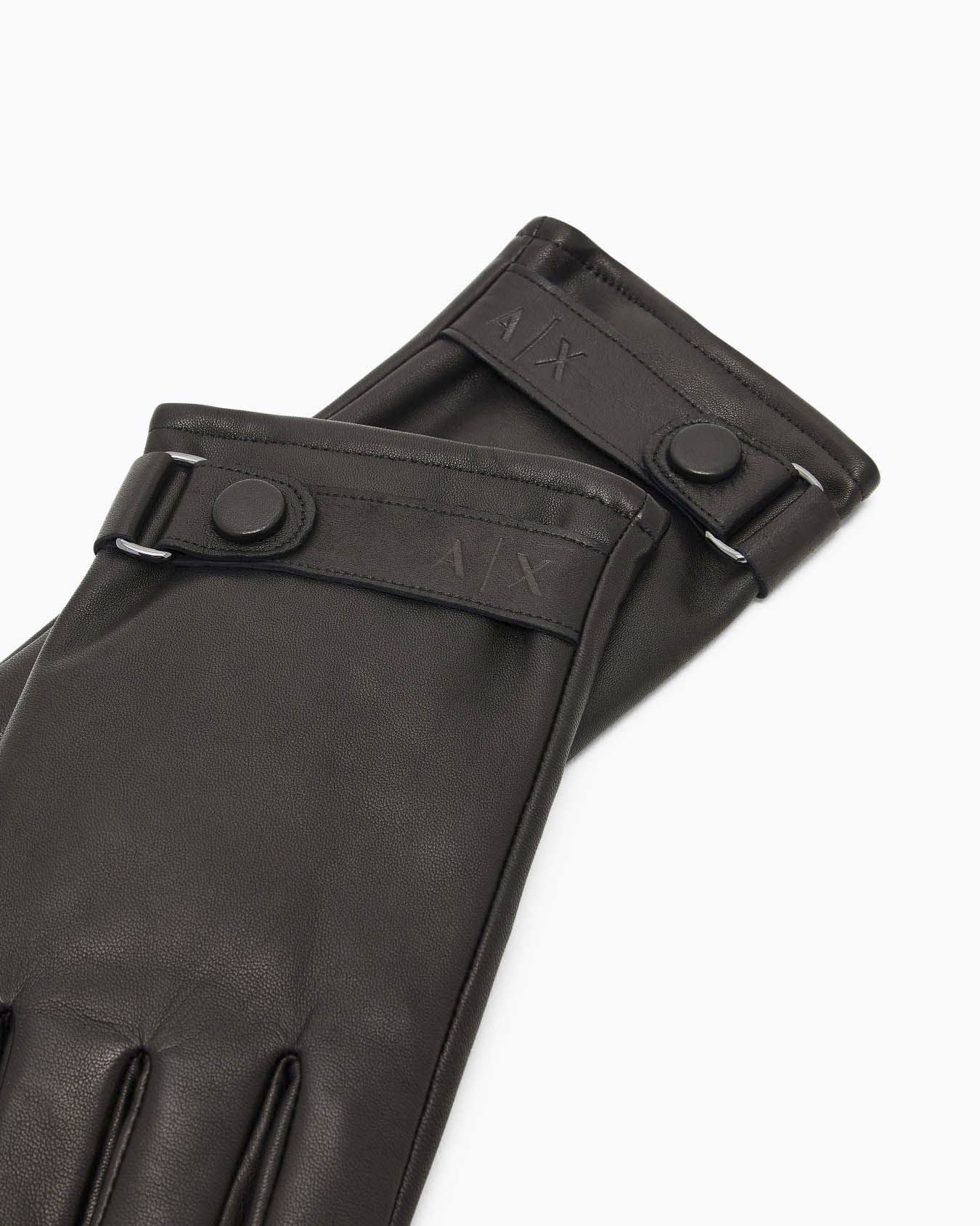 Guanti Armani Exchange neri in pelle con logo impresso e cinturino regolabile