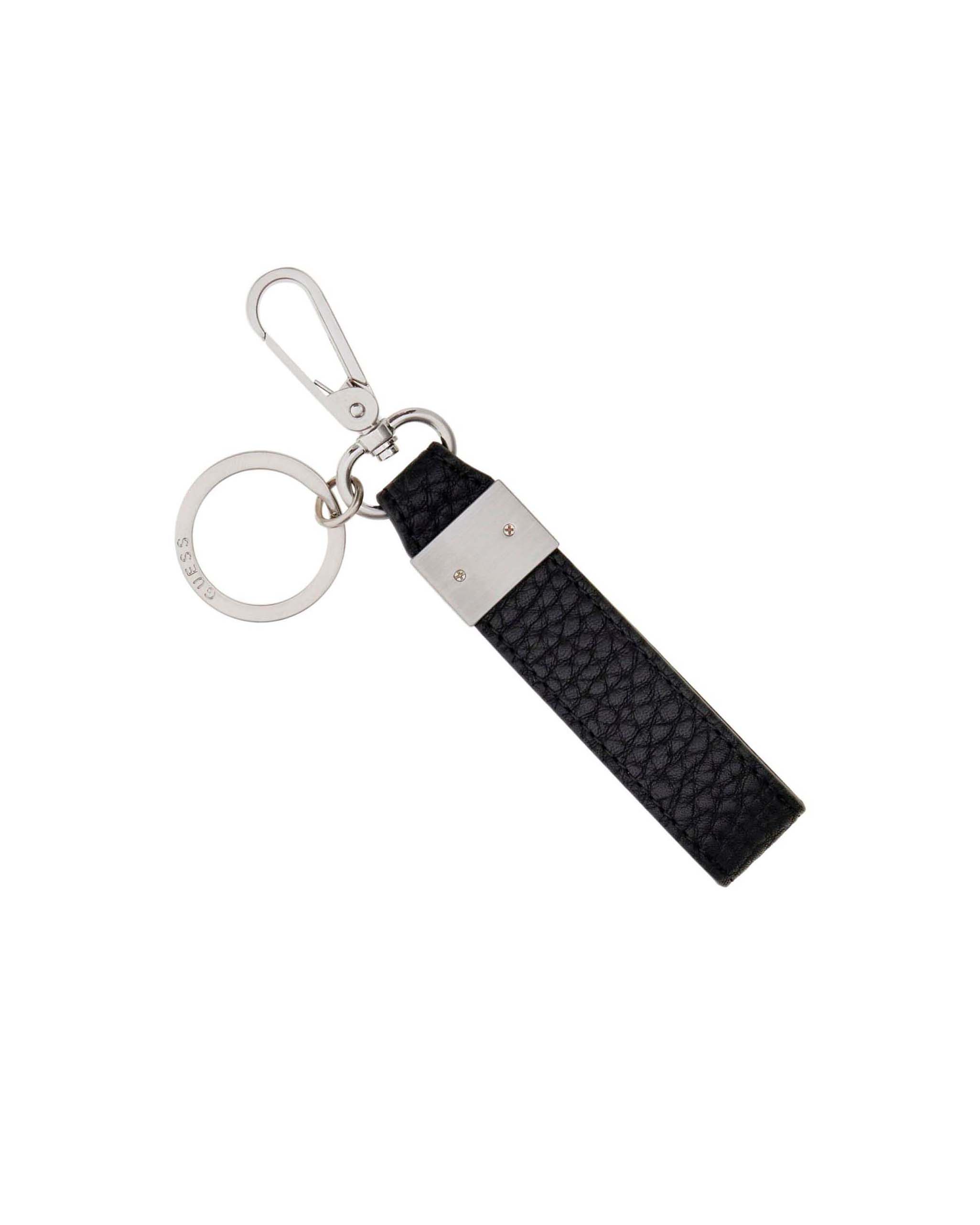 Portachiavi Guess nero in similpelle con dettagli metallici e logo inciso