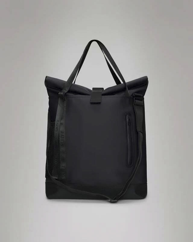 Trail Tote Bag Rains nera in tessuto tecnico impermeabile effetto gommato