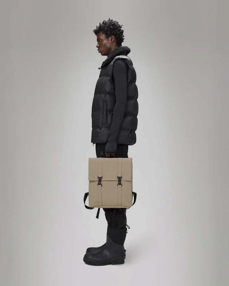 Zaino Msn Bag Mini Rains sabbia in tessuto tecnico impermeabile effetto gommato con doppia chiusura ...