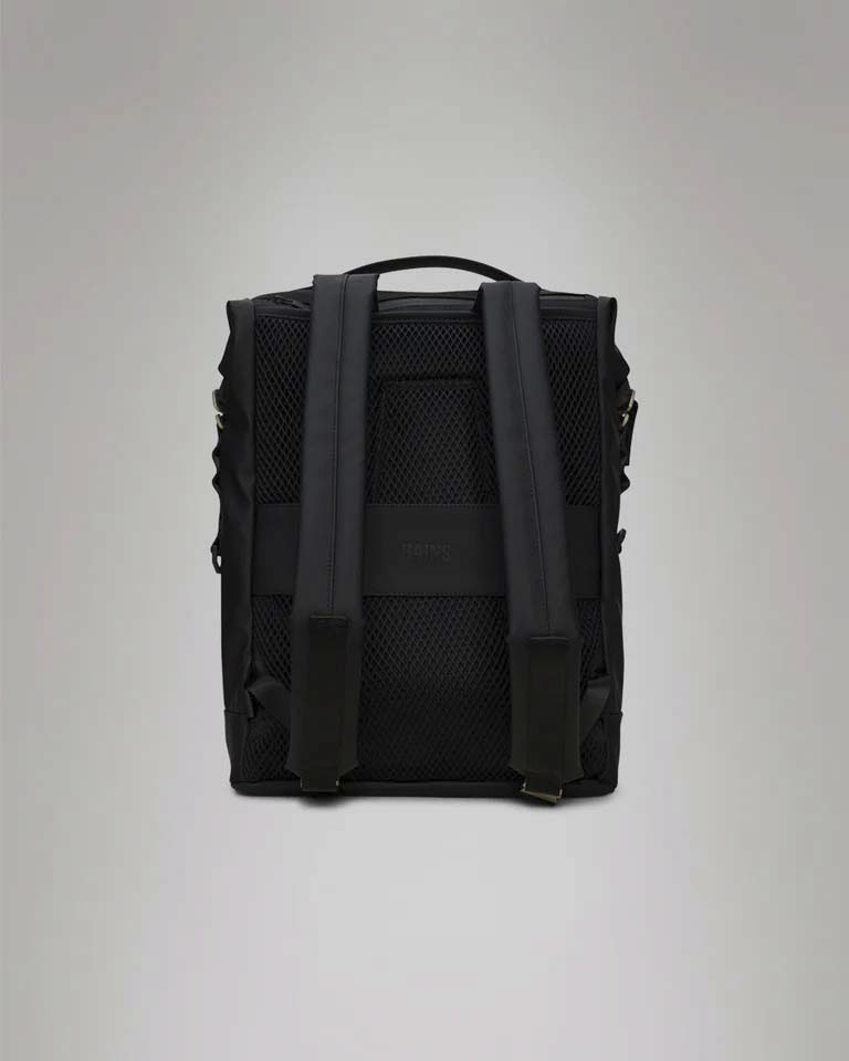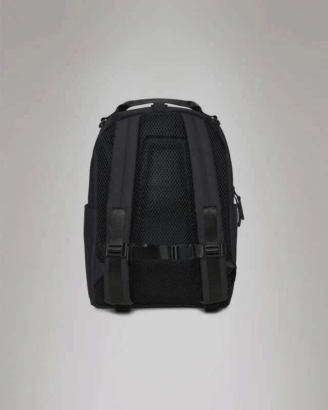 Zaino Clip Front Backpack Rains nero in tessuto tecnico impermeabile effetto gommato