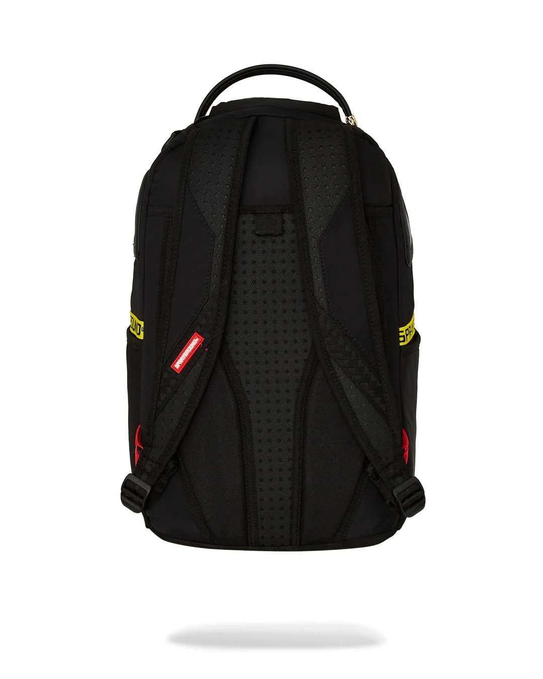 Zaino Sprayground Shark Central Yellow Tape Dlx Satin in tessuto impermeabile con fauci di squalo ri...