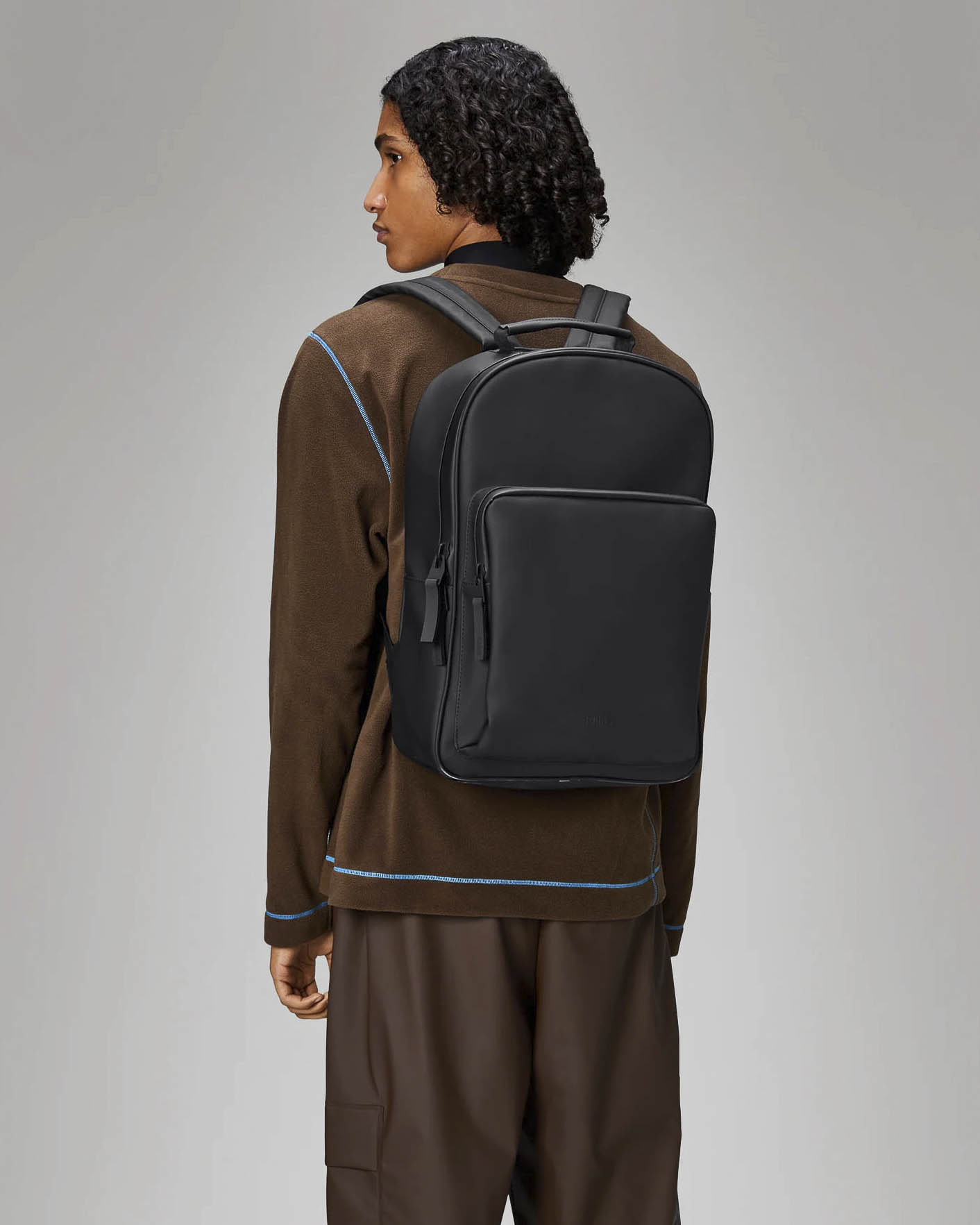 Book Daypack large Rains nero in tessuto impermeabile effetto gommato