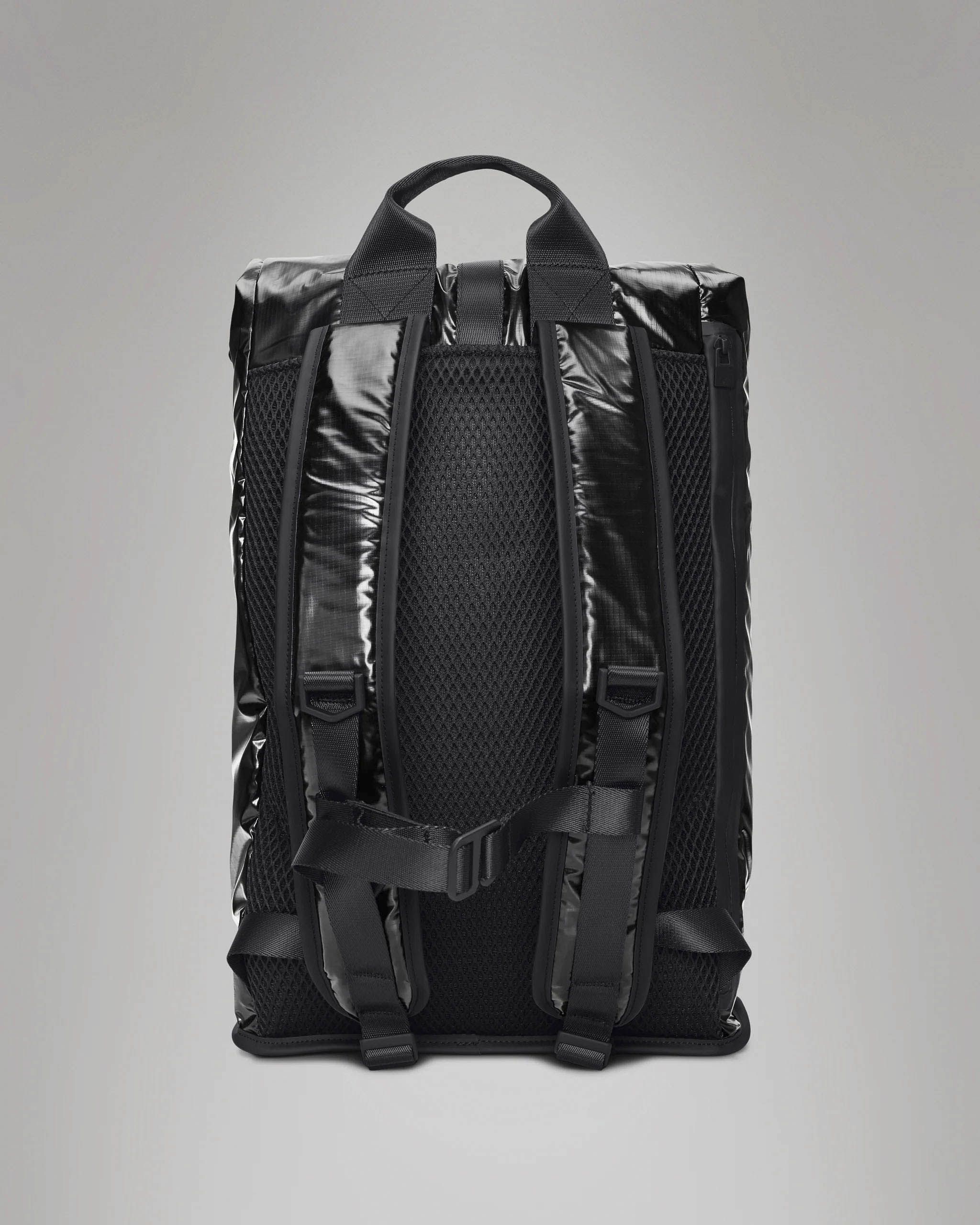 Zaino Sibu Rolltop Rucksack Rains nero in tessuto tecnico impermeabile effetto lucido e gommato