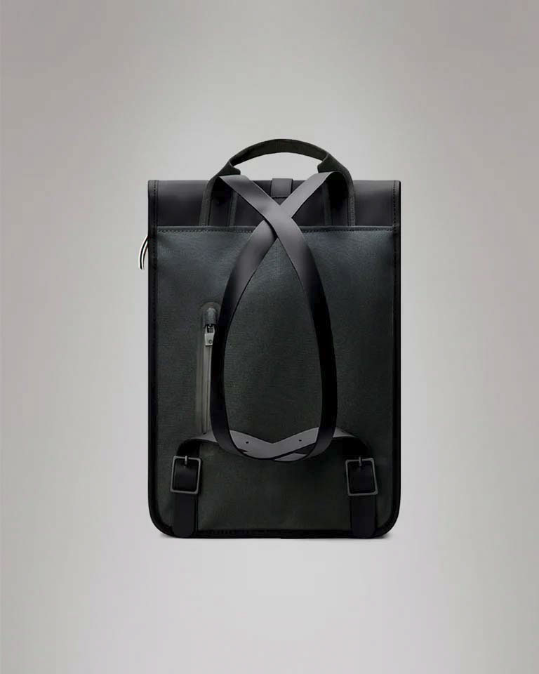 Zaino Rains Backpack Mini salvia in tessuto tecnico impermeabile effetto gommato con patta
